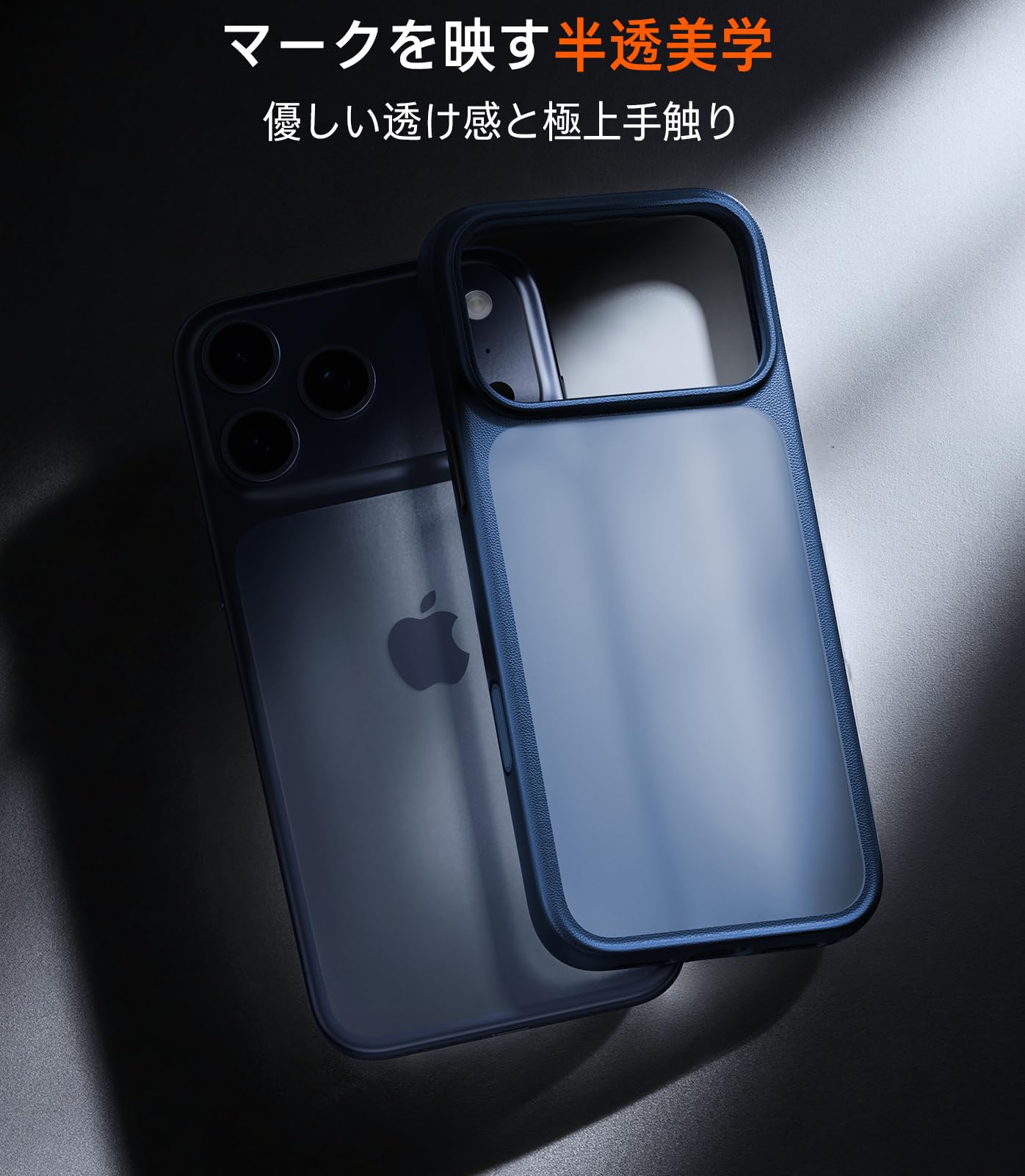 ■ 【半透明の美学でロゴを美しく演出】背面にはPC素材を採用し、半透明のマット質感を実現する。