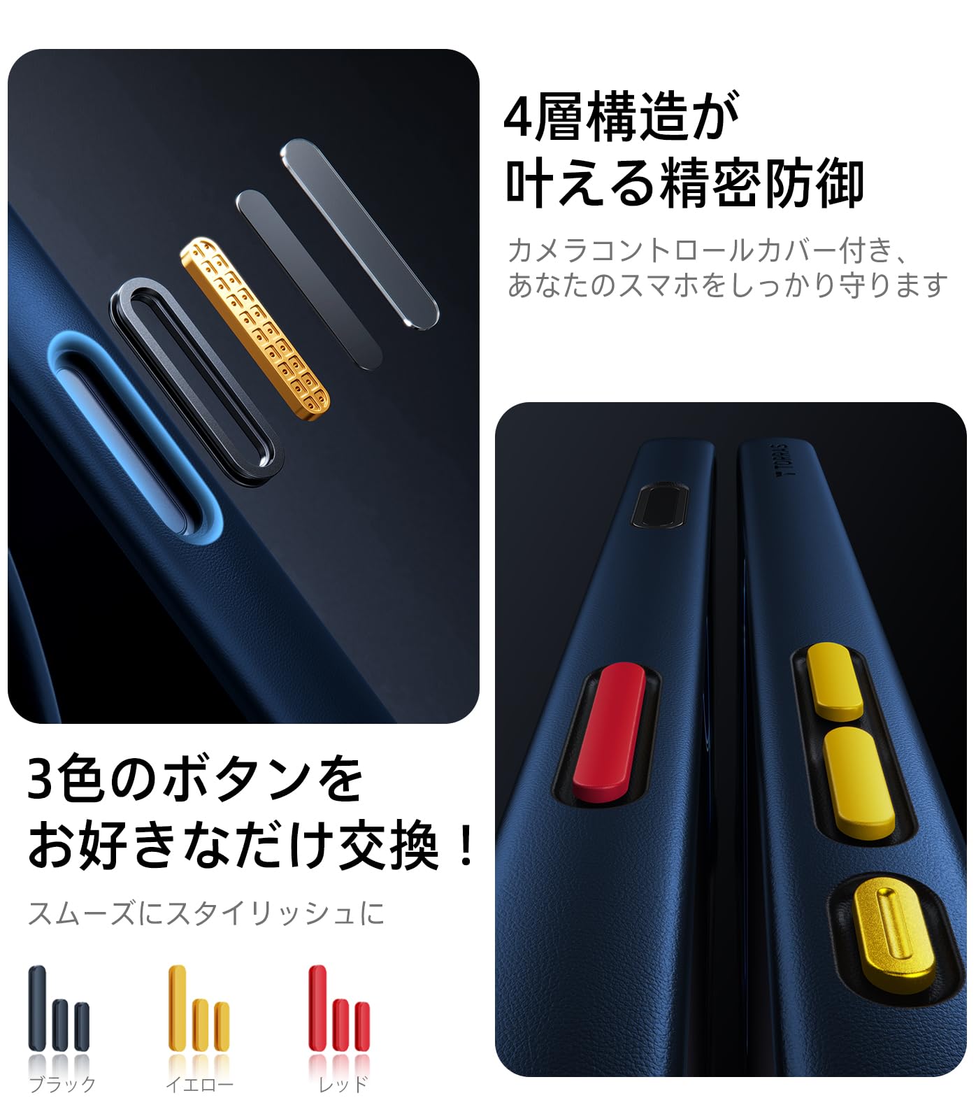 ■ 【3色の交換可能なボタン・自由に組み合わせ可能】スマホケースの最新デザインがついに登場した。