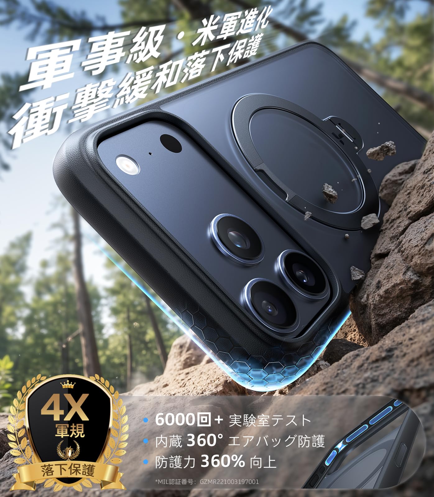 ■ 【米軍耐衝撃・高額な修理代を心配なし】Ostand Q3 Spin は 2025 年最新型の 3 層構造ショックアブソーバーを搭載し、航空級アルミニウムフレームスタンドと耐摩耗 PC を組み合わせた軍規級保護ケース。