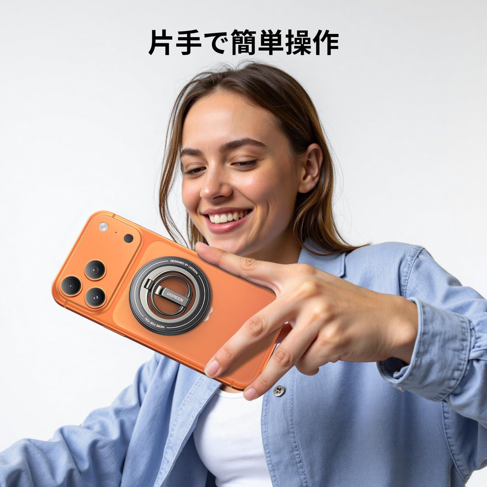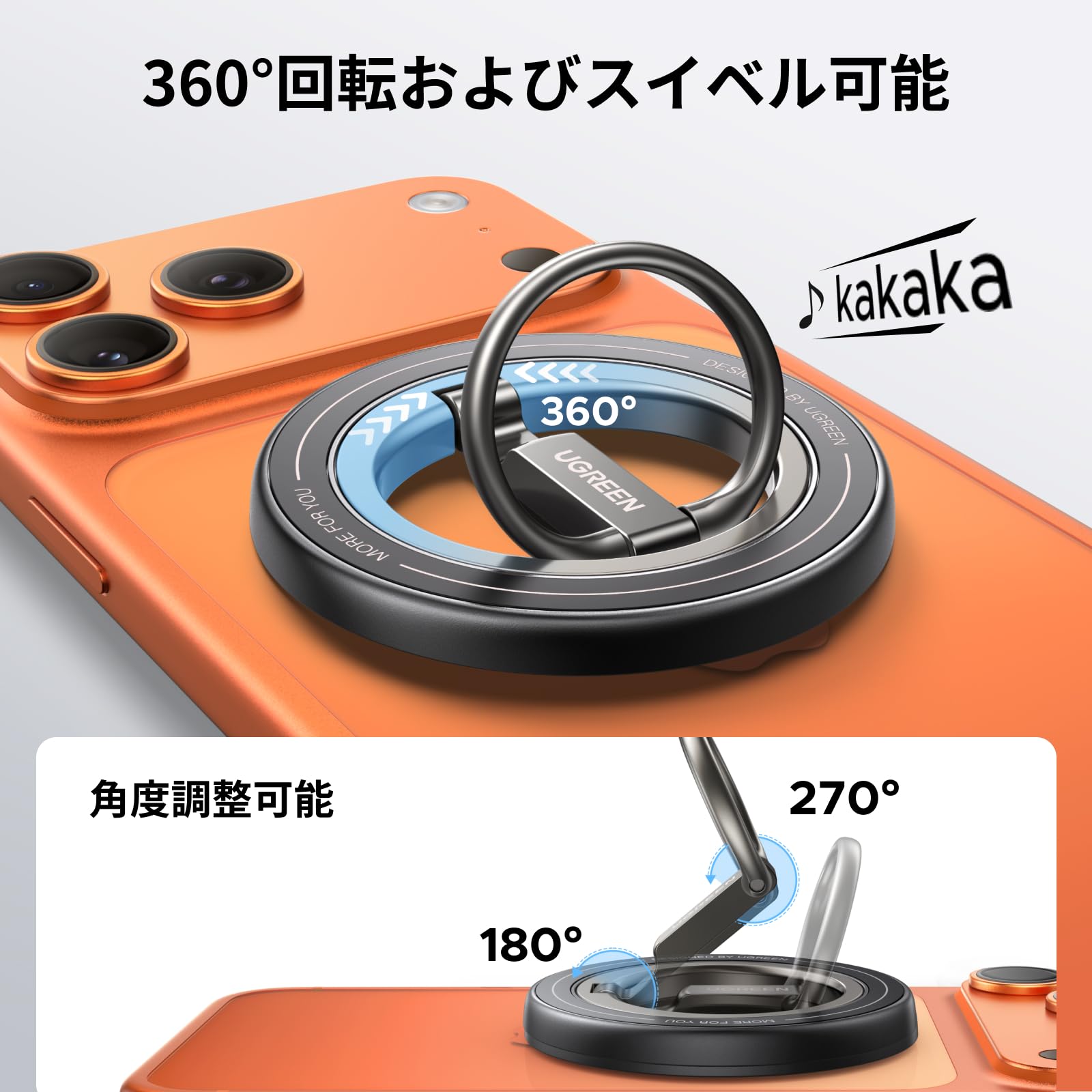 UGREEN スマホ用ホルダース スマホリング magsafe リング 360度回転式 両面マグネット マグセーフ リング バンカーリング メタルリング スマホスタンド スマホリングホルダー iphone リング 簡単着脱 薄型 折り畳み iPhone17/16/15/14/13/12 Androidなどに対応
