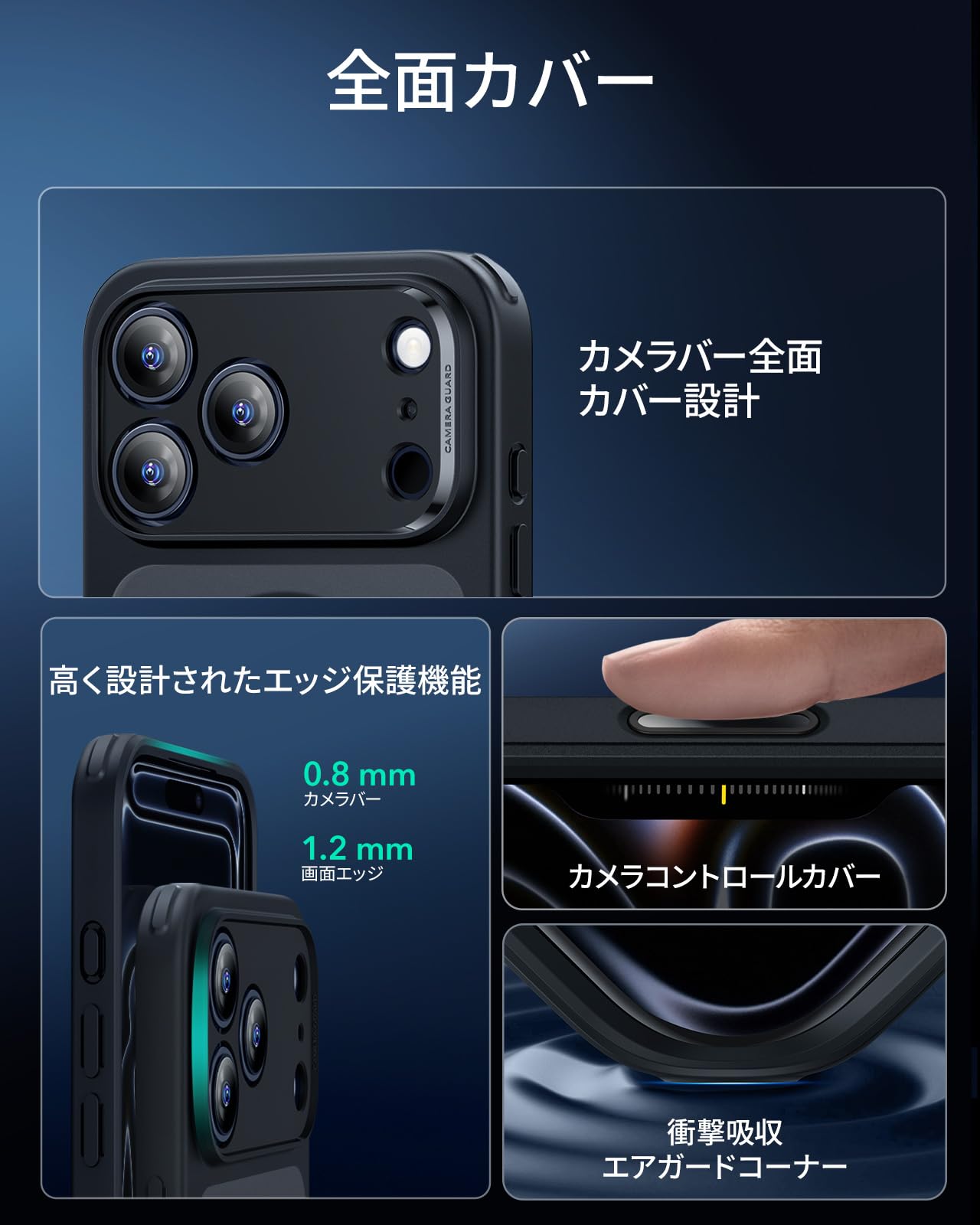 ■ 【プロのように滑らか!スライド式カメラコントロール】いphone17proの革新的なカメラコントロールボタンを専用カバーで守りながら、指先に伝わるプロ級の操作感をそのまま体感できます。