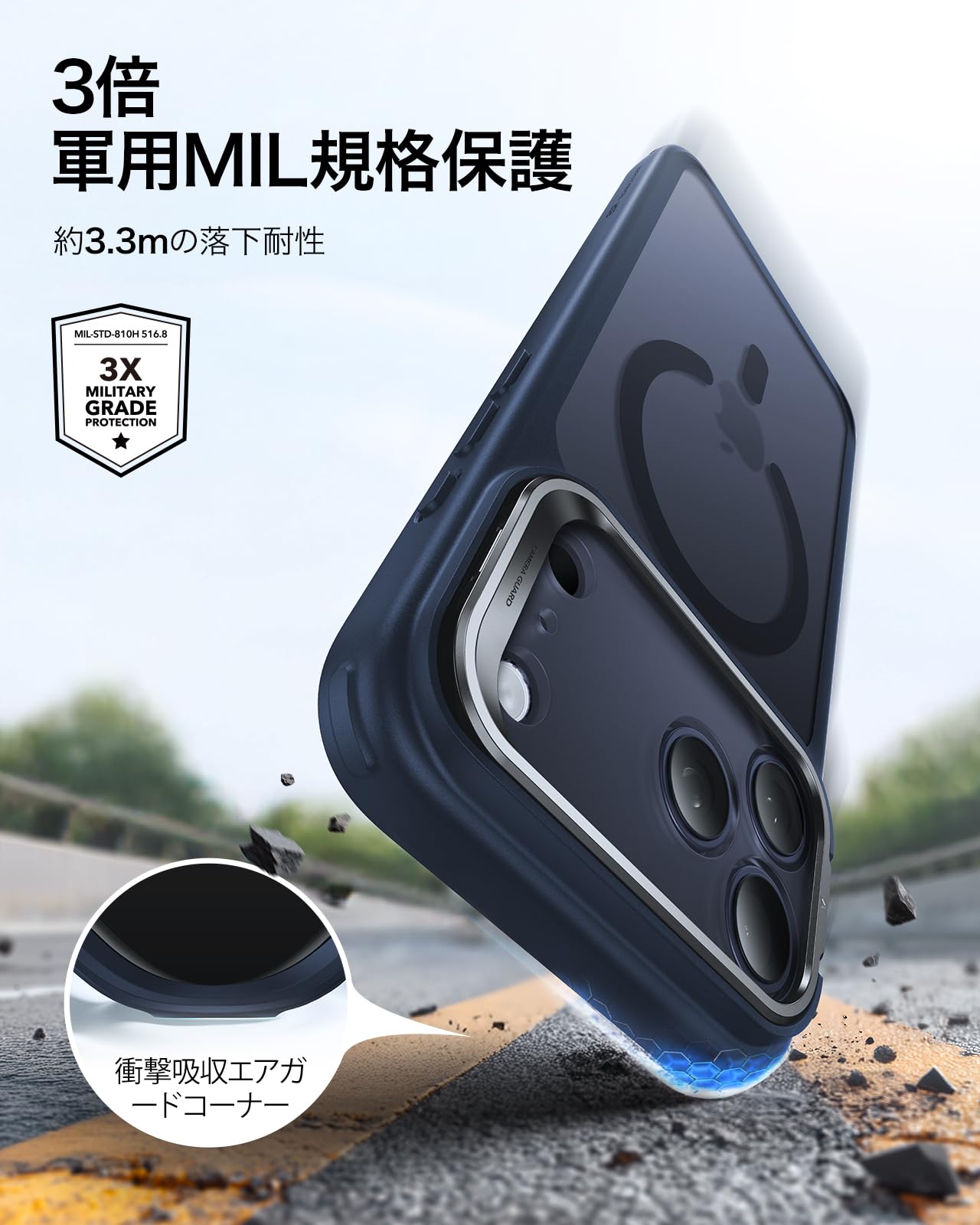 【デザイン受賞シリーズ!】ESR iPhone 17 Pro ケース MagSafe対応 3倍米軍MIL規格 カメラコントロールカバー 隠れスタンド 調整可能 ワイヤレス充電 エアガードコーナー 耐衝撃 傷防止 軽量 マグネットスマホケース 高耐久性 Qi2.2対応 最大25W高速充電 いphone17pro ケース iphone17Pro用Classicシリーズ フロストブルー