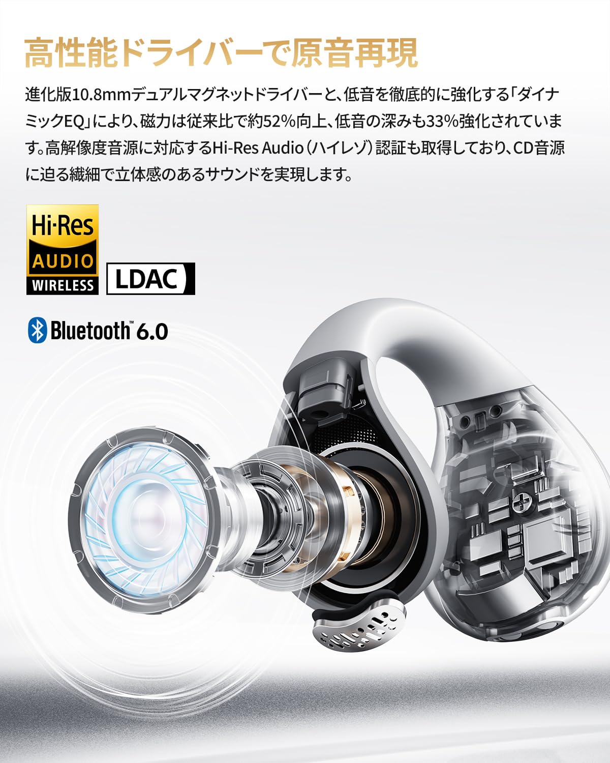 ■ 【10.8mm大口径ドライバー搭載、オープン型でも圧巻の音質】本製品は10.8mmの大型ダブル磁気ドライバーを搭載し、従来品より52%強化された磁力と33%深まった低音再現力を実現。