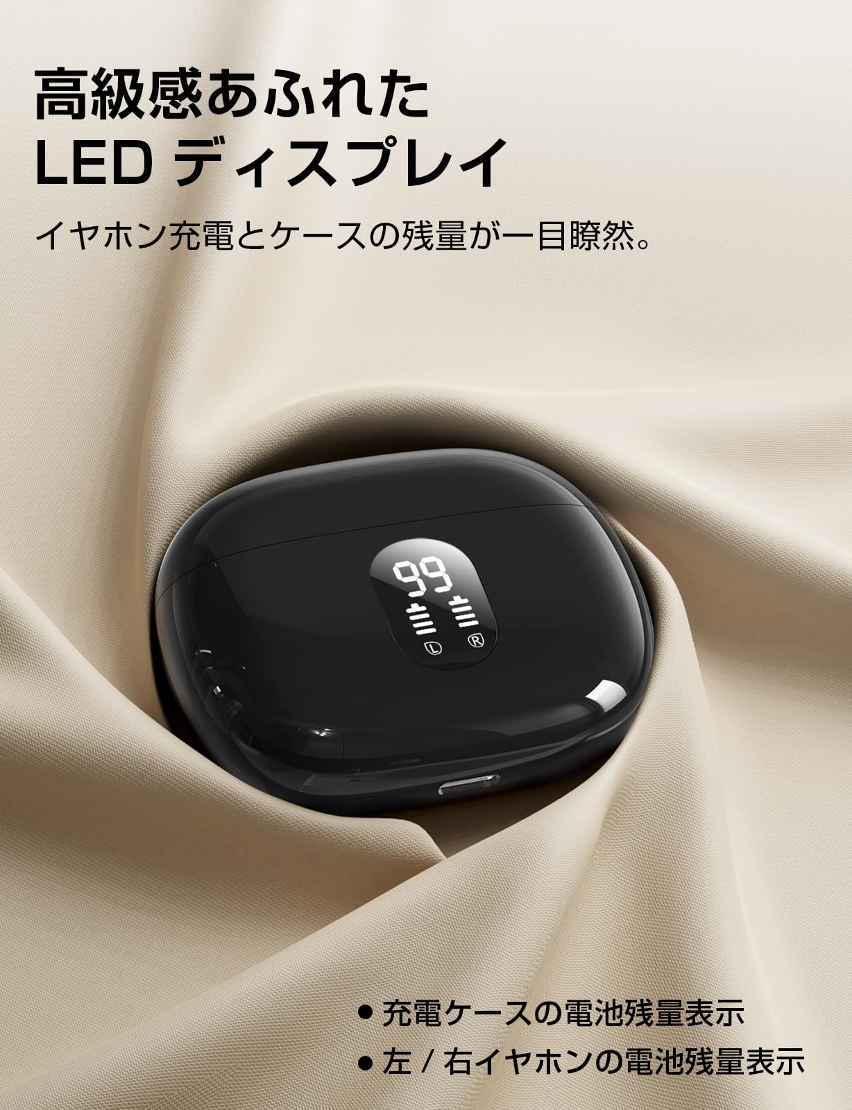 LEDディスプレイの数字は、0%から100%まで明確に表示でいて、いつでもどこでも充電ケースの残量、またイヤホンの充電状況が一目瞭然!