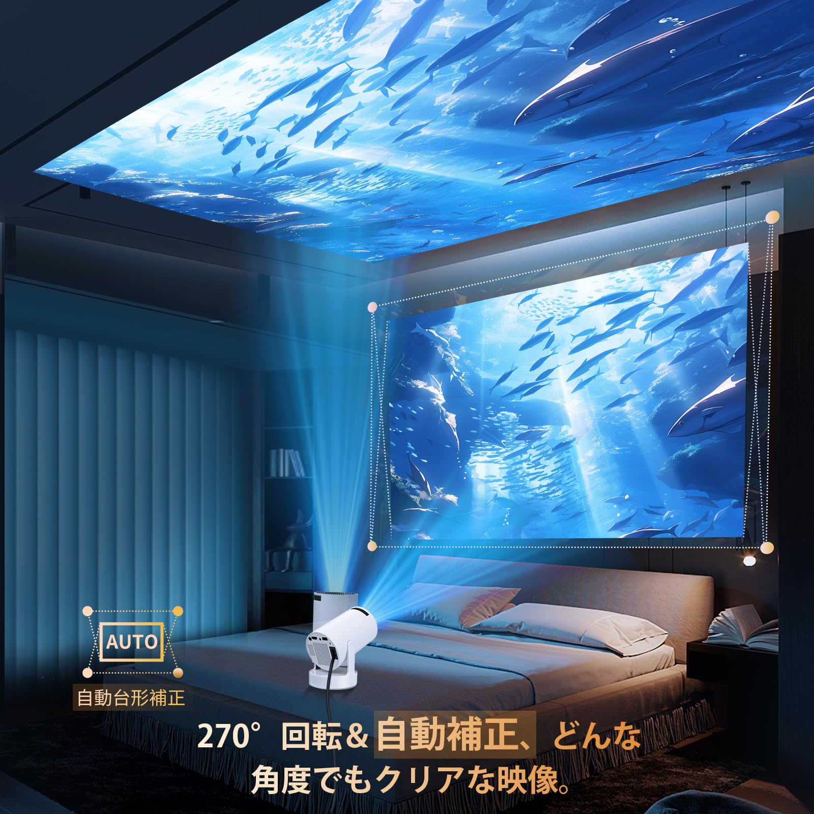 プロジェクター 家庭用 【2026最新Android TV搭載&270°回転】Bluetooth5.4 HiFiスピーカー内蔵 18000LM 短焦点 プロジェクター 小型 天井 1080P Wi-Fi6 4K対応 自動台形補正 操作簡単 projector IOS/Android/パソコン/DVD/PS機/SWITCH接続可 プレゼントに最適 日本語取扱書