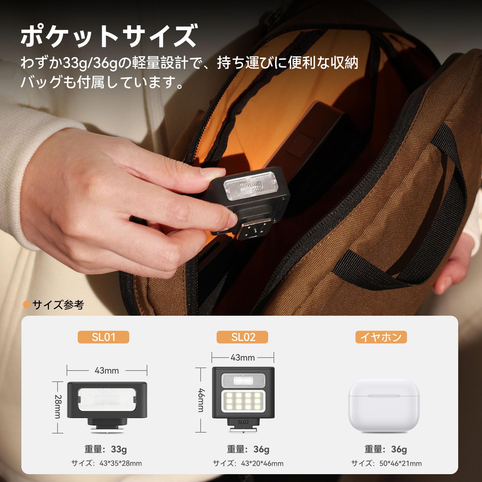 ■ 【ポケットサイズ】:4.3*3.5*2.8cm、わずか33gの重量で、ポケットに簡単に収まるか、ミラーレス カメラとカメラに取り付けることができ、どんな撮影条件でも持ち運びやすい完璧なアクセサリーです。