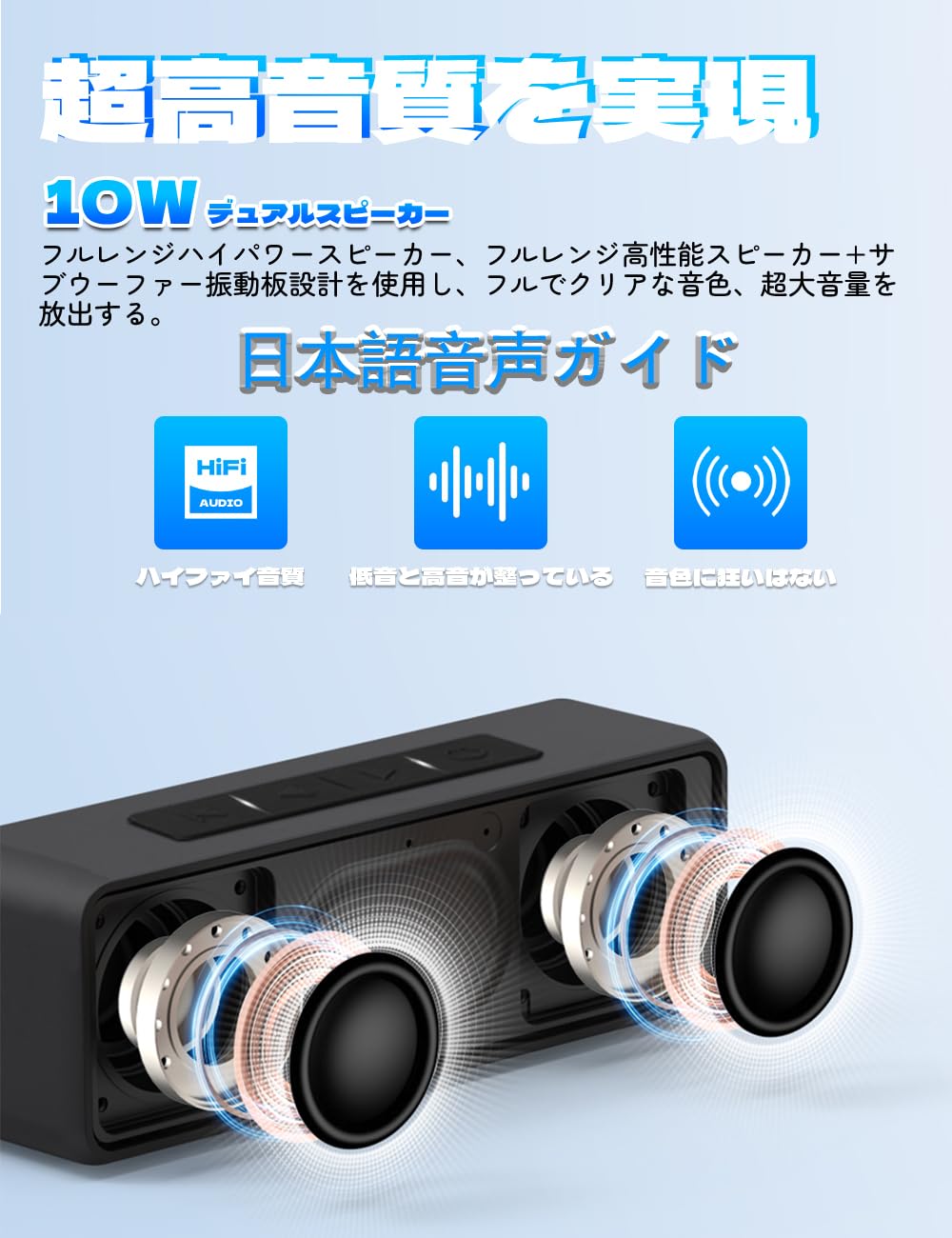 ■ 【IPX7防水&日本語音声ガイド】IPX7の堅牢な防水性能を備えた防水ポータブルスピーカーです。