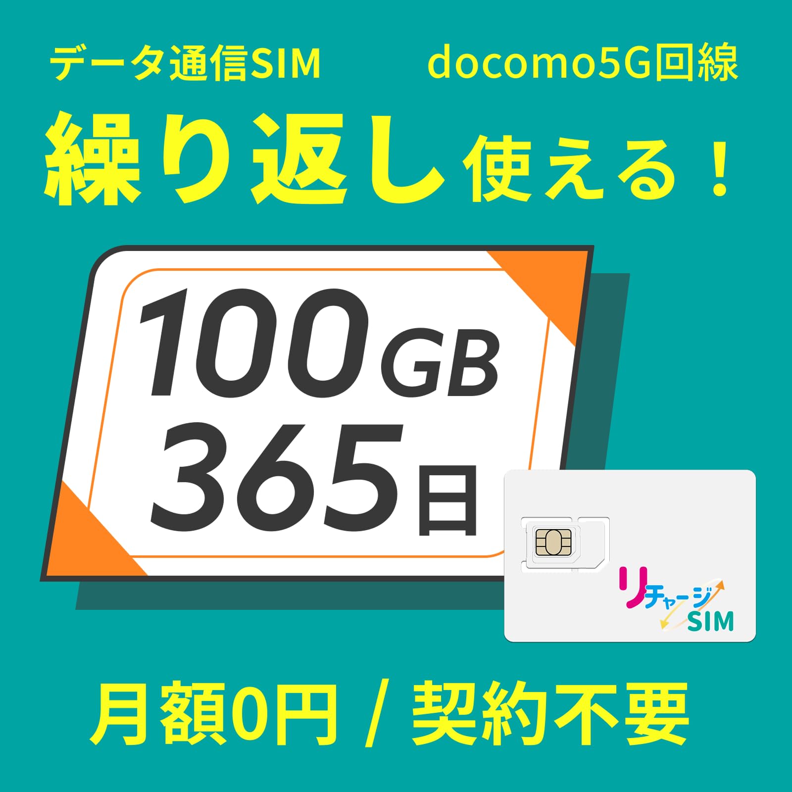 【リチャージSIM】日本 100ギガ 365日 物理SIMカード 契約不要 月額0円 ギガリチャージで繰り返し利用可能 4G LTE/5G/docomo/NTTドコモ データSIM プリペイド 格安 SIM 1年【物理SIM-100GB/365日】