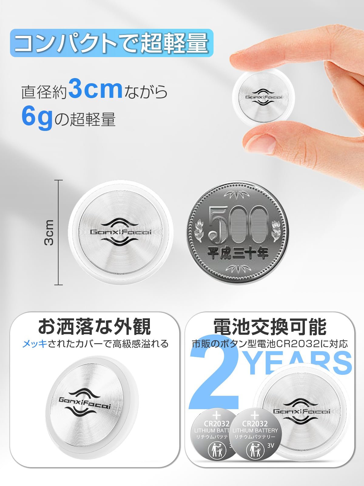 ■ 【超小型&軽量!持ち物に馴染むデザイン】わずか3cm・8gの超小型設計で、財布・鍵・バッグ・ペットの首輪などに簡単に取り付け可能。
