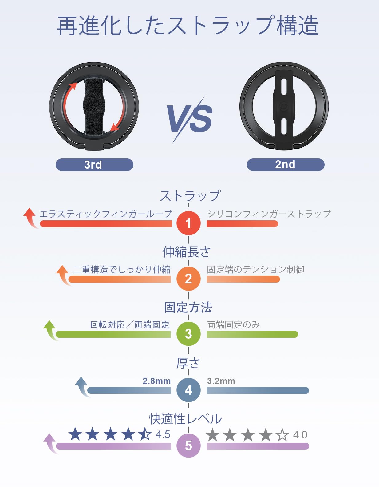 ■ 快適なエラスティックフォングリップ:本製品のストラップは、より快適で高伸縮性のあるエラストバンドを採用しています。