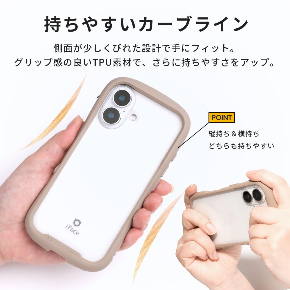 iFace Reflection iPhone 16 ケース クリア 強化ガラス (グレー)【エコPKG】【 iphone16 ケース アイフォン16 カバー スマホケース 透明 耐衝撃 ストラップホール付き クリアケース 】