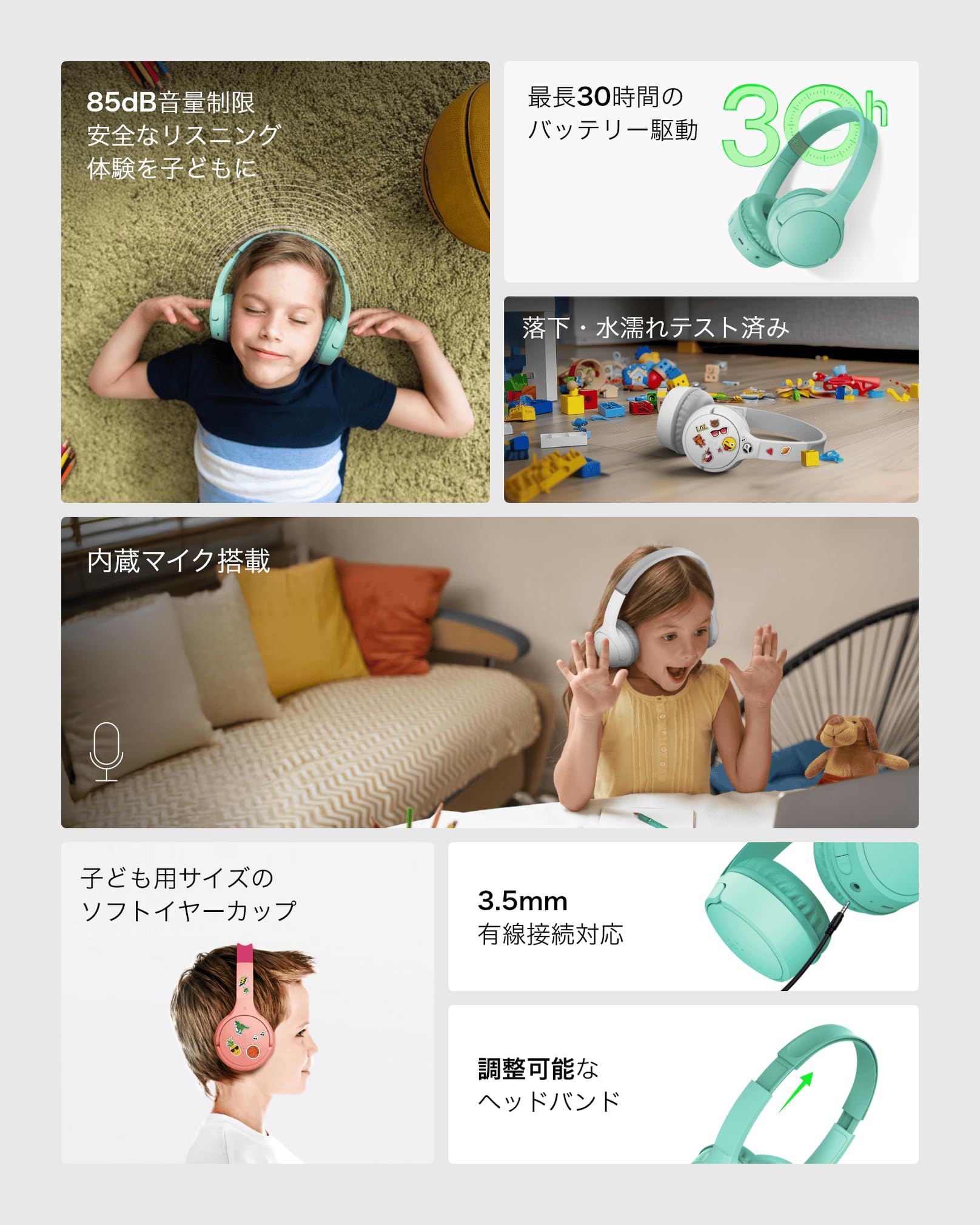 ■ 【目を離しても安心】お子様が誤って音量を大きくしてしまっても安心の音量制限機能付き子ども用ヘッドフォン。