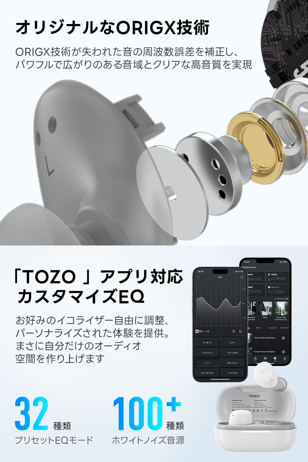■ 【 専用アプリに対応・音楽のカスタマイズ 】 TOZO A1は専用アプリに対応しており、多彩な設定を自由にカスタマイズできます。