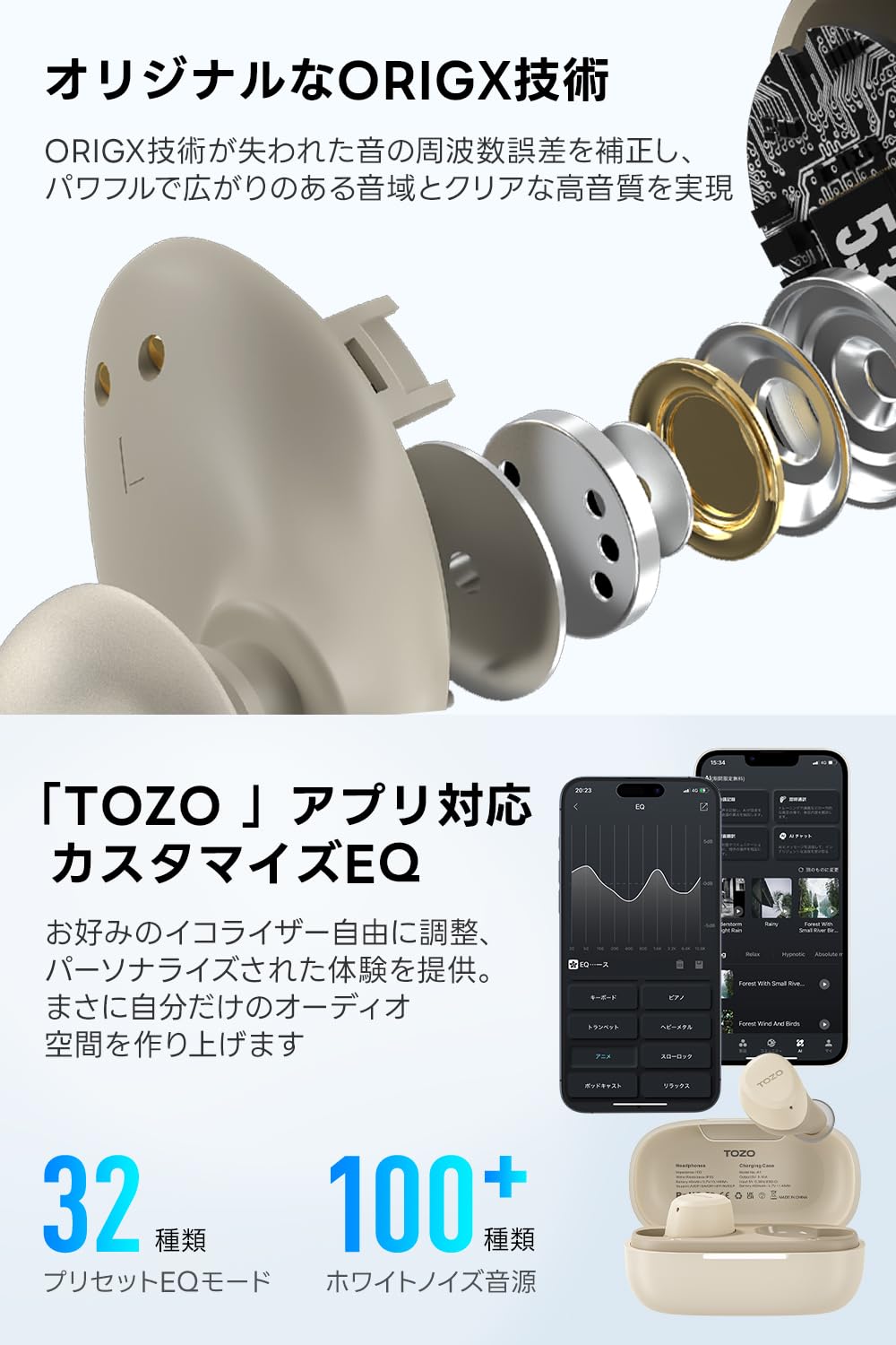 ■ 【 専用アプリに対応・音楽のカスタマイズ 】 TOZO A1は専用アプリに対応しており、多彩な設定を自由にカスタマイズできます。