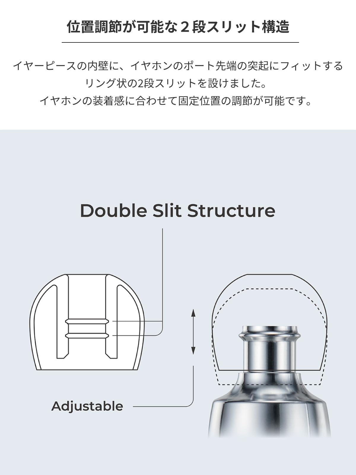 ■ 【イヤホンの装着性を高める独自形状】一般的なイヤーピースと比較して耳のより奥の広いエリアでフィットする独自形状により密閉性が向上。