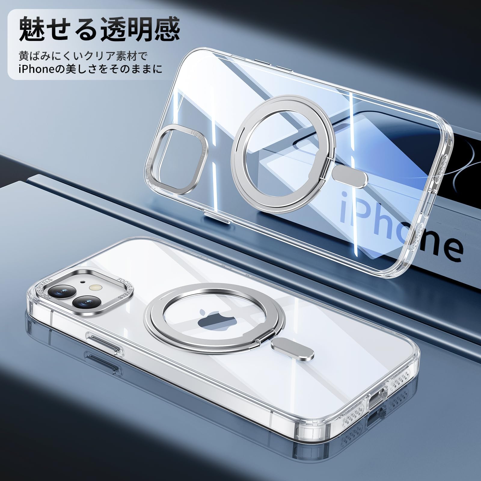iPhone 12 / 12 Pro 用 ケース Magsafe対応 360°回転スタンド アイフォン12 / 12プロ 携帯ケース リング マグネット ワイヤレス充電 縦横多角度 対応 カバー Uovon アイホン12 / 12プロ スマホケース 車載ホルダー ストラップ穴付き 透明 指紋防止 黄变防止 金属ボタン 米軍MIL規格 ・ クリア