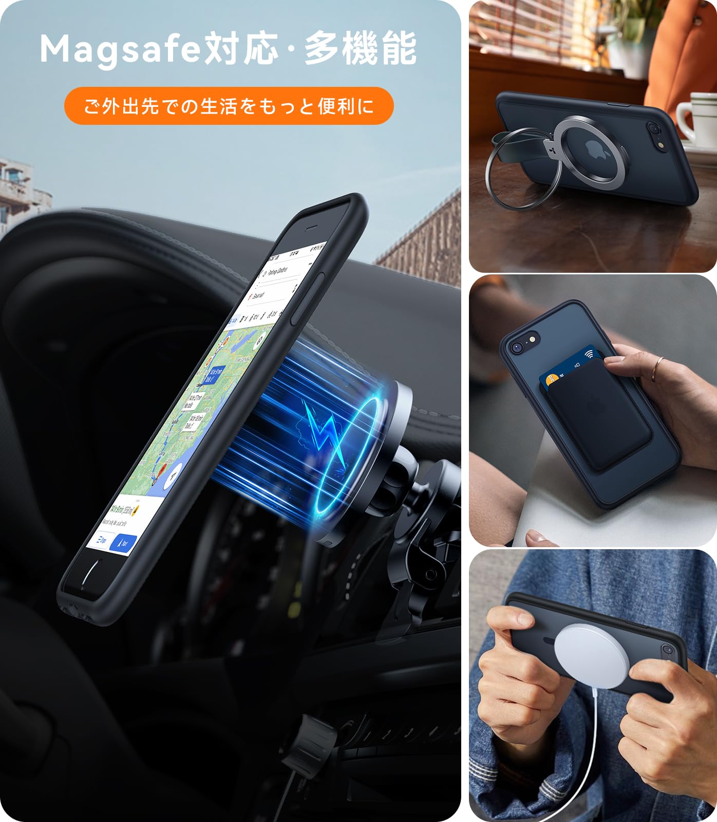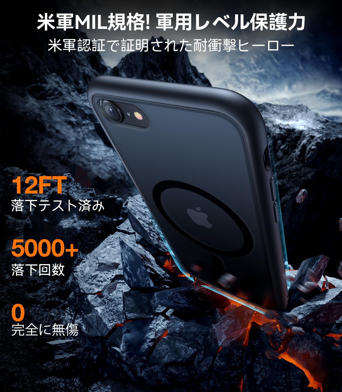 TORRAS iPhone se se2 se3 ケース【米軍進化耐久・高强力マグネット】 耐衝撃 强力な磁力 マット感 黄ばみなし ストラップホール付き 黄変防止 半透明 マット 黄ばみなし ワイアレス充電対応 ブラック
