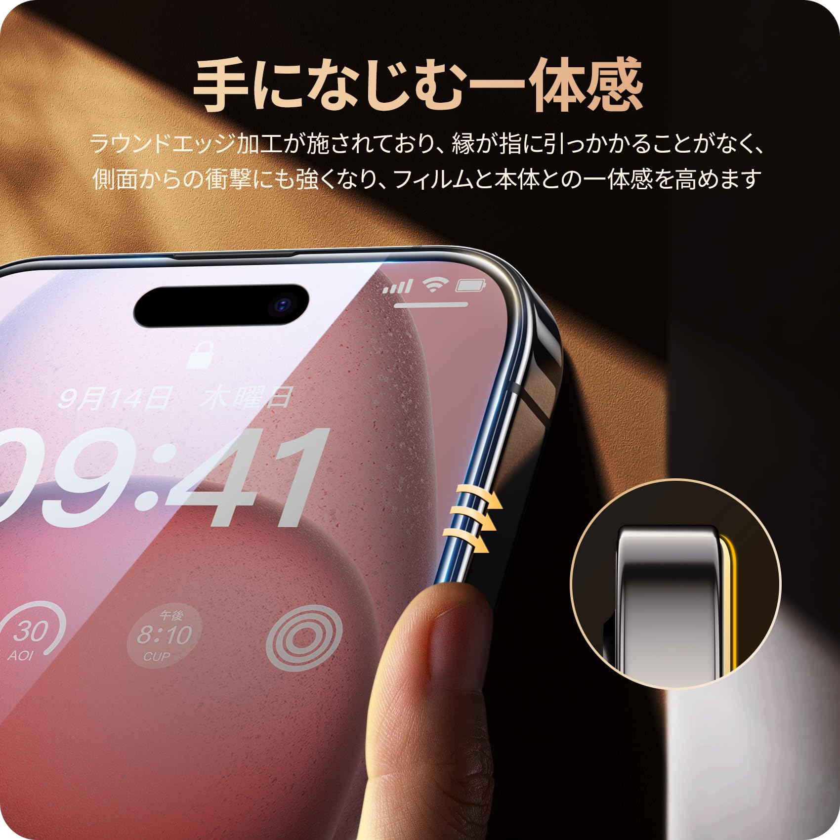 驚くほど高い透明度を誇っており、画面の鮮明さや美しさを損なわずにiPhone15本来の美しい画面をお楽しみいただけます。