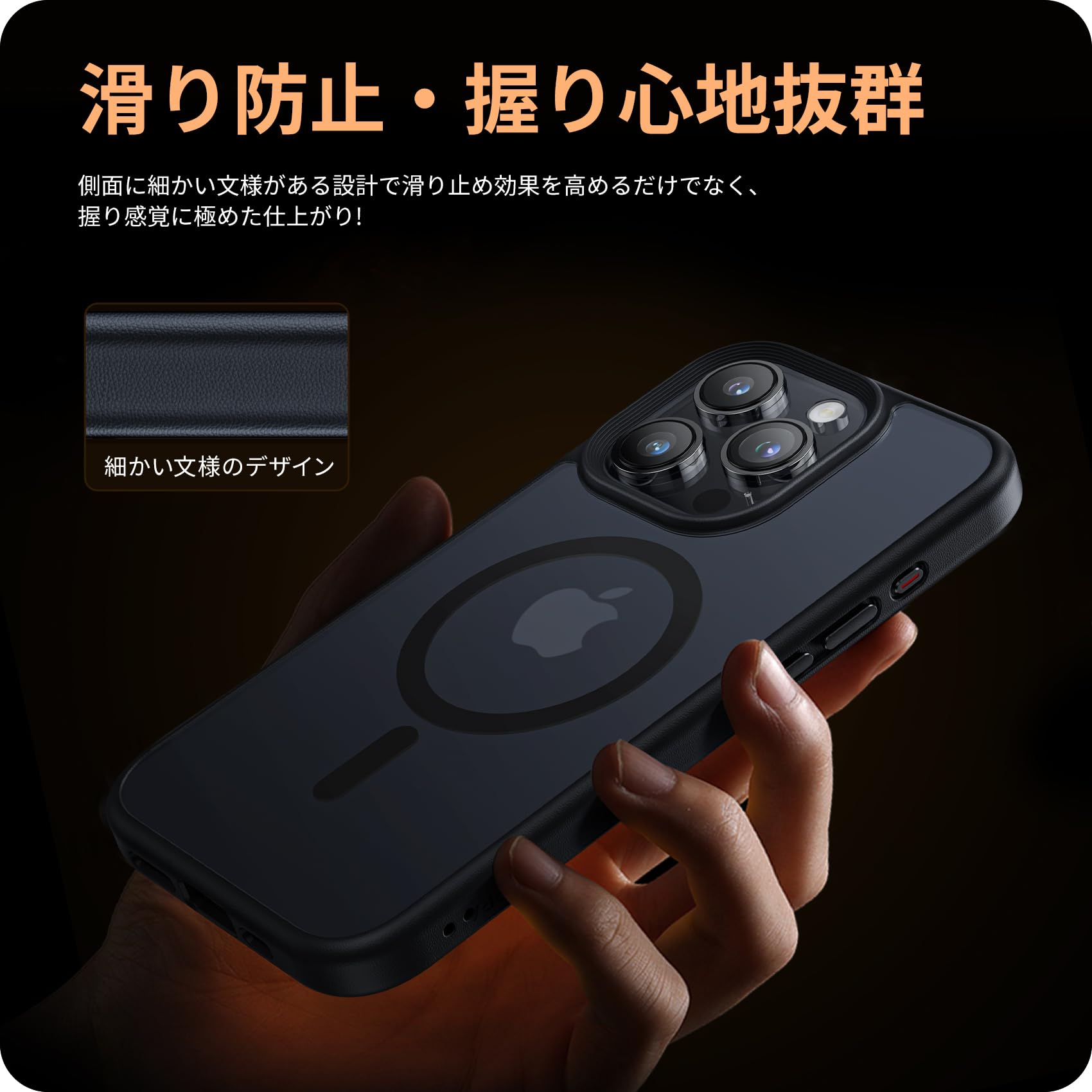 NIMASO ケース MagSafe 対応 iPhone15Pro 用 スマホケース マグセーフ対応 カバー 滑り止め マット仕上げ 全面保護 耐衝撃 米軍MIL規格取得 ワイヤレス充電 ストラップホール付き アイフォン15プロ(6.1インチ)対応 携帯スマホケース(黒羽シリーズ)NSC23K858