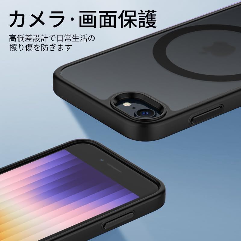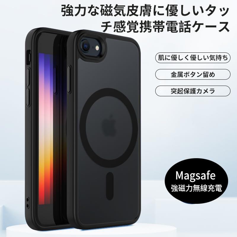 【米軍規格・Magsafe対応】Gtsoho iPhone SE3 用 ケース 半透明 マグネット搭載 ワイヤレス充電 耐衝撃 耐久性 全面保護 黄ばみなし ストラップホール付き イフォンiPhone SE2・8・7 用 カバー 4.7 用 カバー マグセーフ対応 ブラック