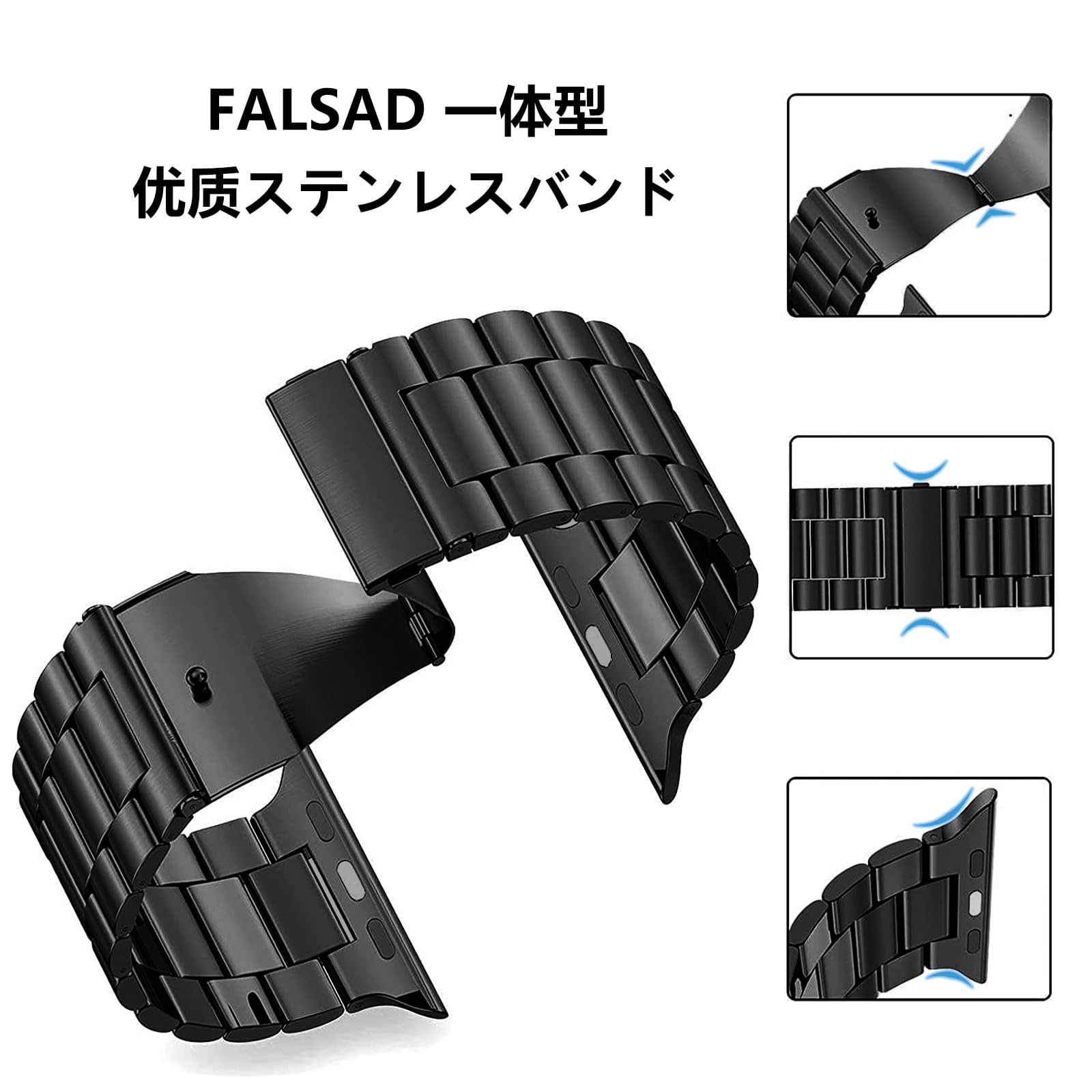 [FALSAD] 新型 Apple Watchバンド ステンレス 46mm/42mm/44mm/40mm/45mm/41mm保護ケース付き 対応 Se3/Se2/Se/Series11/10/9/8/7/6/5/4 アップルウォッチ 交換バンド,iwatch メタル 金属 長さ調整器具付き メンズ レディース兼用ベルト ビジネス 通勤(44mm ブラック)