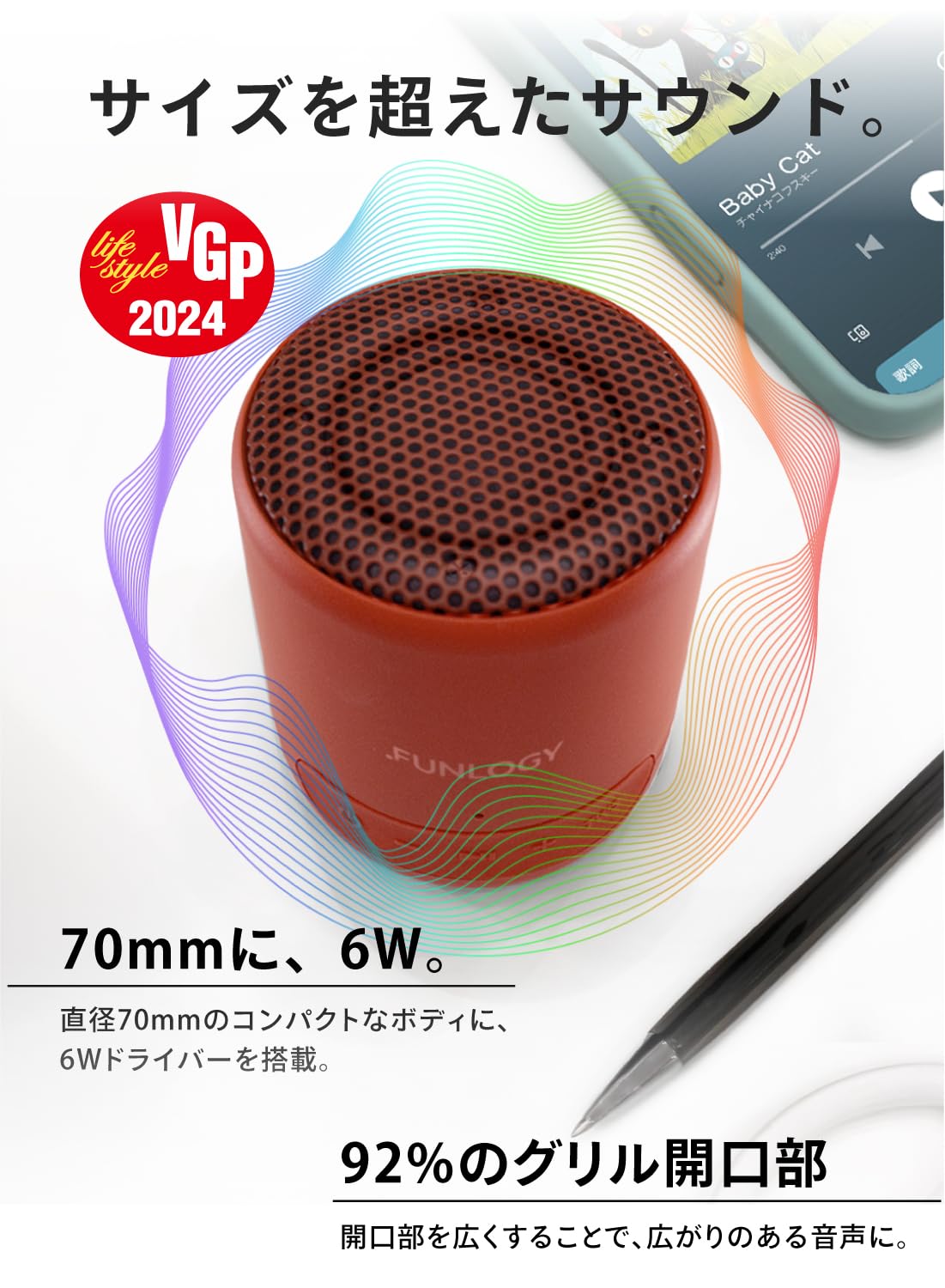 FUNLOGY Portable Mini(スピーカー/ポータブルスピーカー)【VGP2024受賞】防水対応/小型/Type-C 充電式/バッテリー 内臓/Bluetooth対応/ワイヤレス / IP67 お風呂 で使える/pc スマホ 接続OK/TWS 対応/日本ブランド【日本ブランド】(レッド)