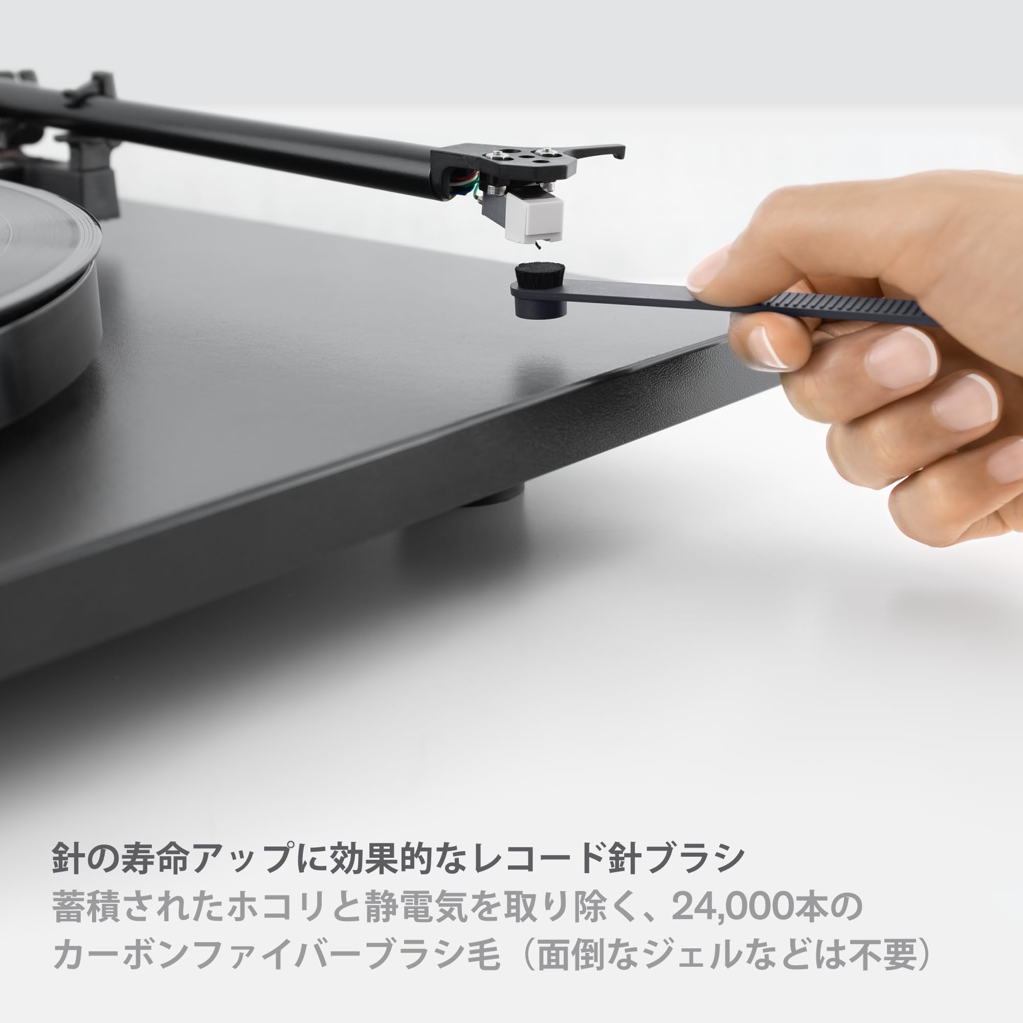 ■ 【柔らかいブラシと洗浄液が汚れを取除く】傷をつけないカーブしたベルベットブラシを盤面に回転させることで、レコードの溝から汚れやゴミを効果的に浮き上がらせます(平らなブラシはゴミを押し込んでしまいます)。