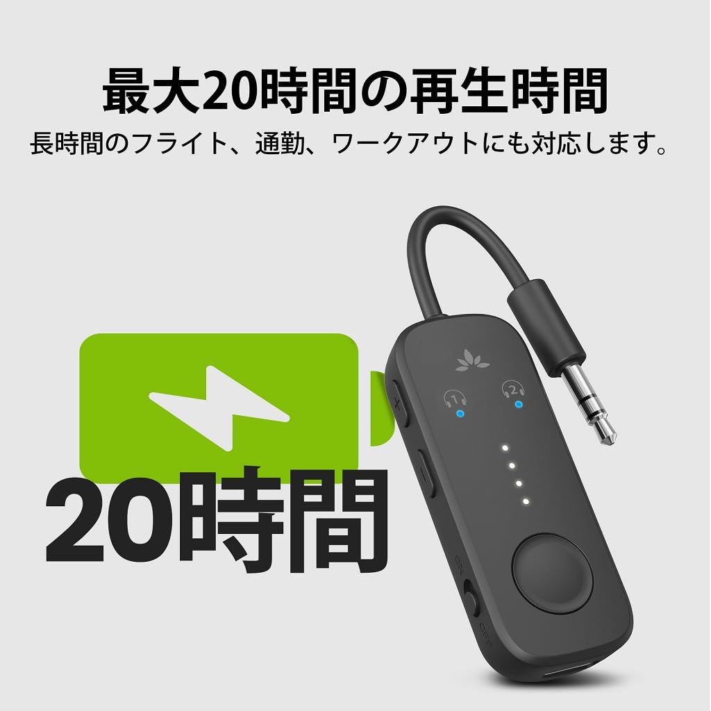 ■ [長持ちするバッテリー] Avantree Relay は、長時間のフライトやトレーニング中も楽しめる完全に充電されたバッテリーを備えており、中断されることなくオーディオをお楽しみいただけます。