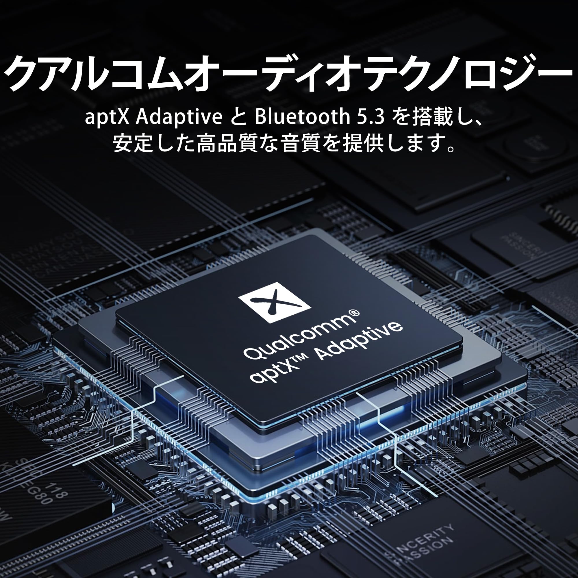 ■ 【低遅延、高品質サウンド】Bluetooth 5.3 と Qualcomm aptX Low Latency Adaptive Technology により、最小限の遅延で最高のオーディオ品質をお楽しみいただけます。