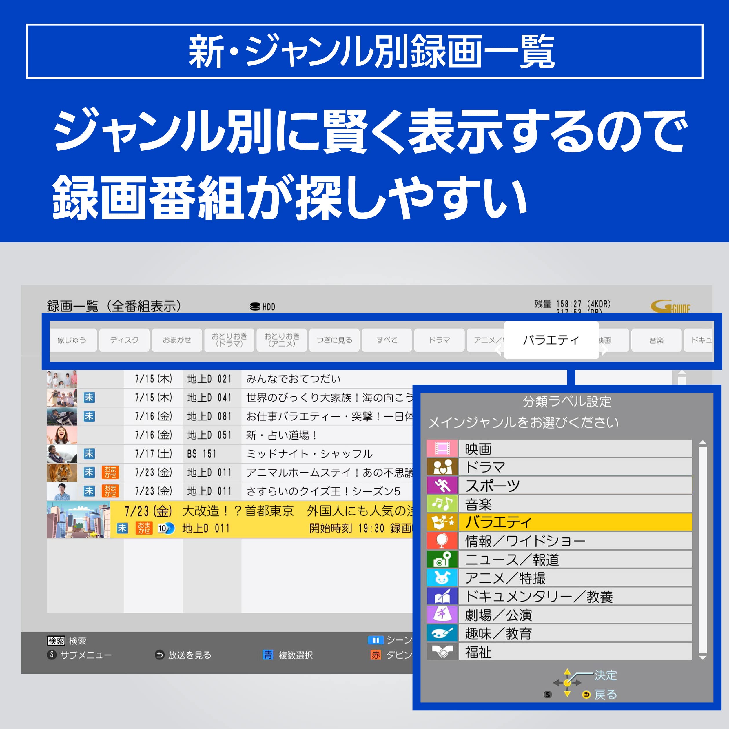 ■ 「ドラマ・アニメ1クール自動録画」搭載でドラマ・アニメを約90日間自動録画/消去で見逃す心配なし
