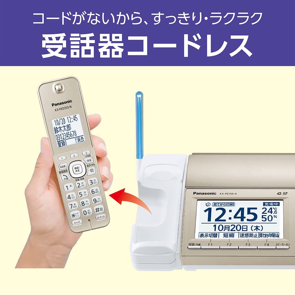 【正規品】パナソニック デジタル コードレス FAX KX-PD750DL-N子機1台付き 迷惑電話相談機能搭載 「温度・湿度アラーム」搭載 見てから印刷機能 シャンパンゴールド【優良 防犯 電話機 推奨品】