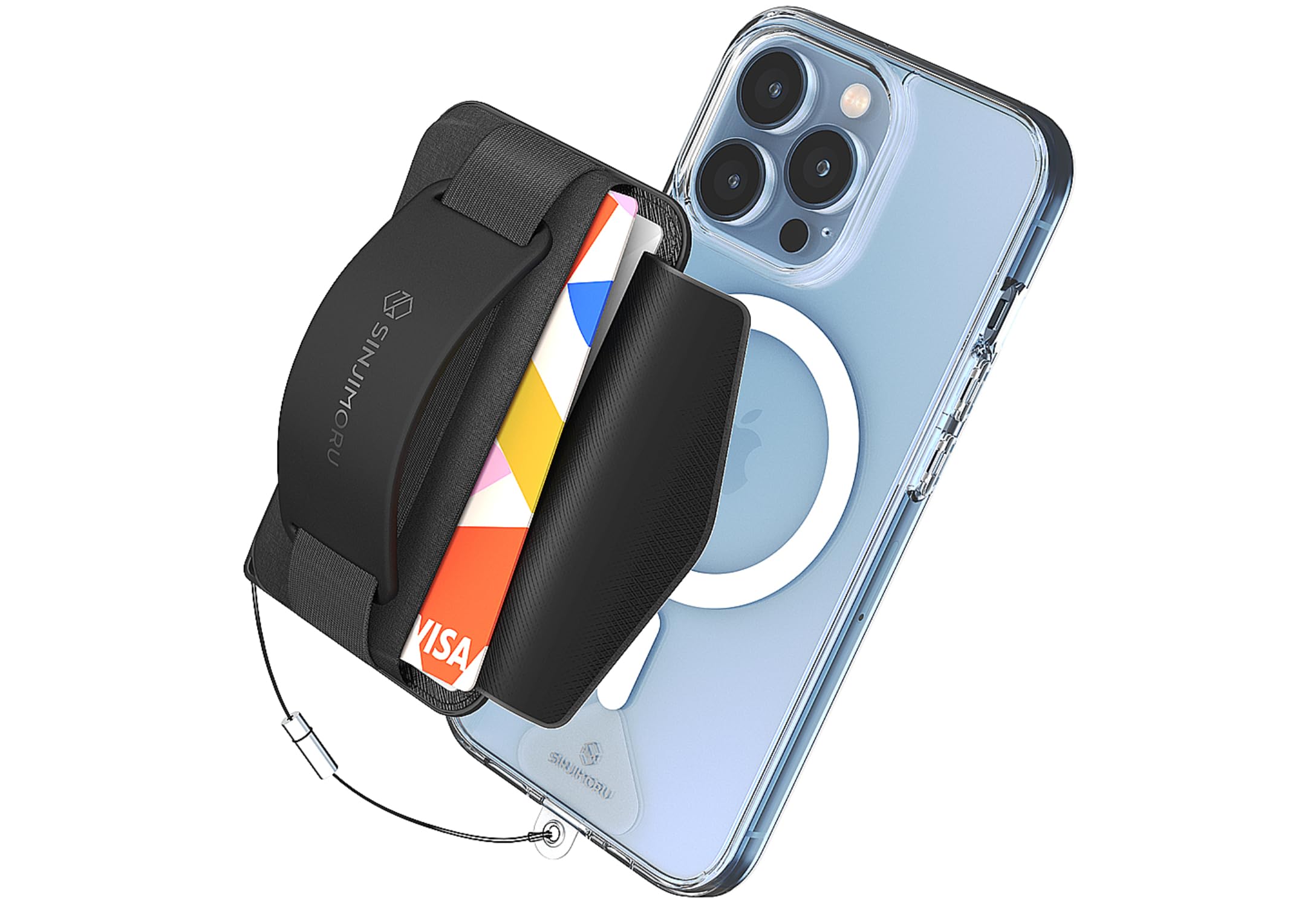 Sinjimoru Magsafe 対応 カードケース スマホスタンド、滑り止めシリコンパッド追加 3in1 iPhoneリングバンド カードホルダー 落下防止のタグパッチ付き Qi充電 対応 脱着簡単 片手操作便利 iPhone17 16 15 14 13 12 シリーズ対応 マグセーフカードケース。M-BGrip ブラック