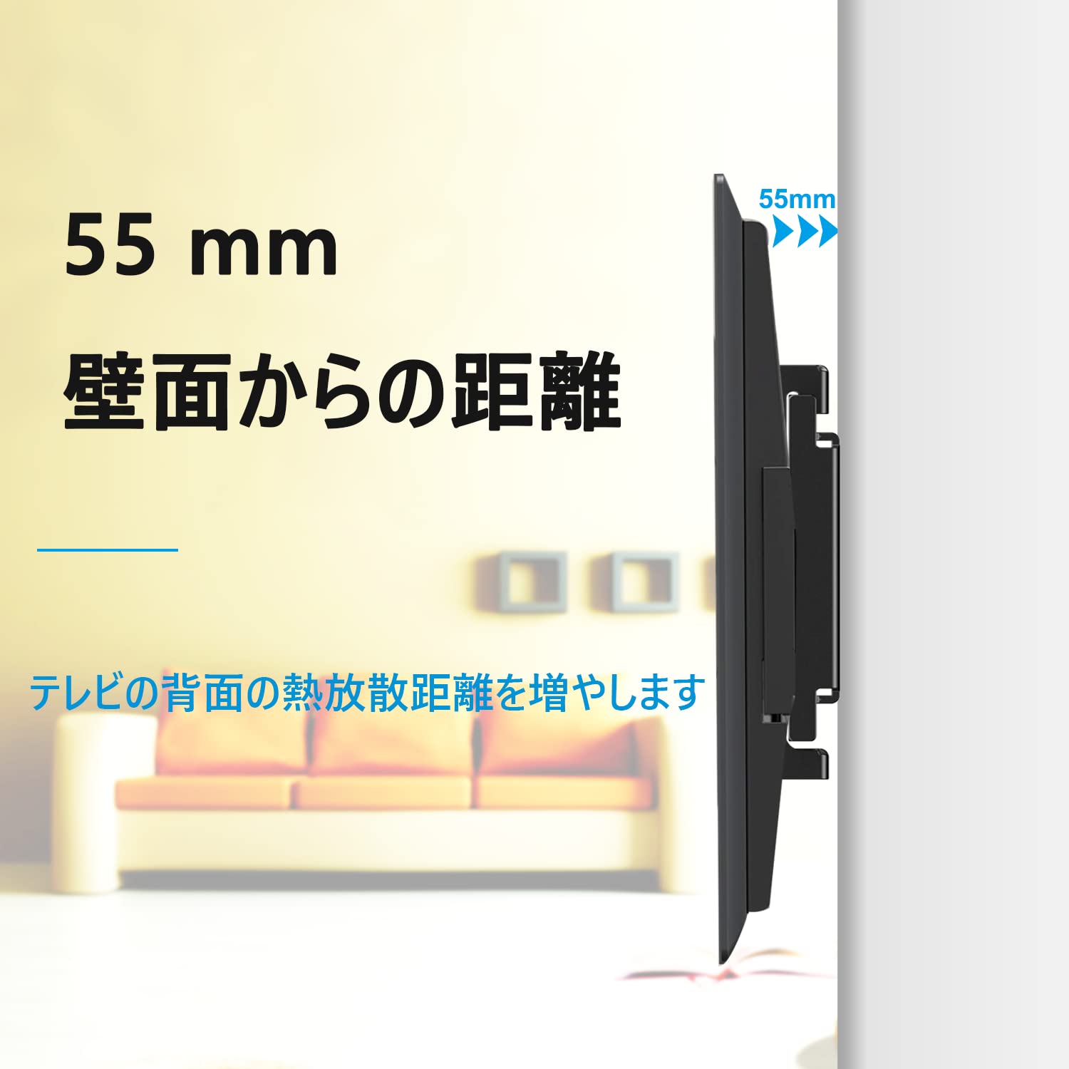 ■ 【高品質,安全性,省スペース】本テレビ壁掛けはがっしりとした安心感のある強靭な冷間圧延鋼で出来て、表面は錆防止にエポキシ樹脂で 、長時間使っても変形しません。