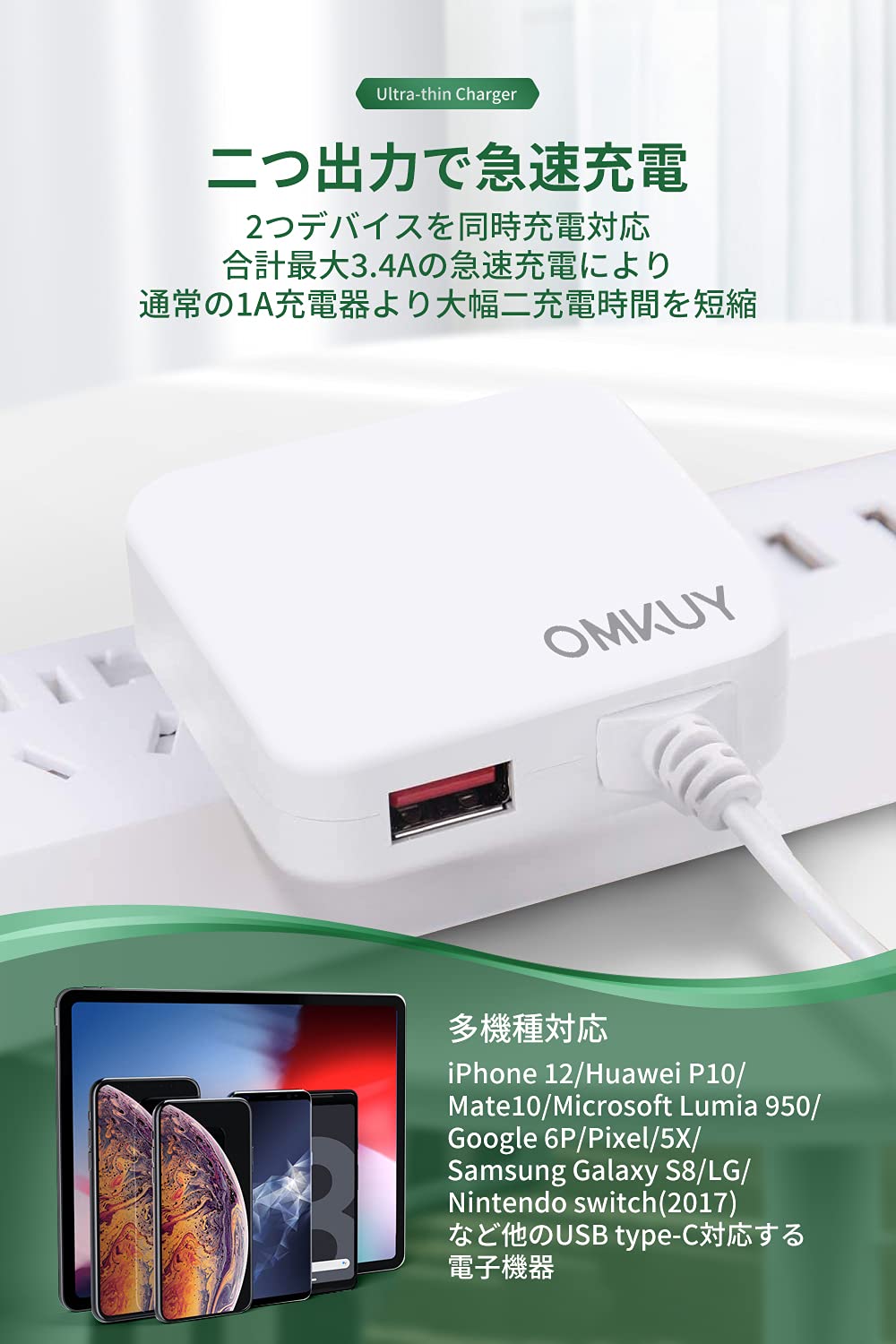 自宅、オフィス、出張での使用に理想的な充電器です。