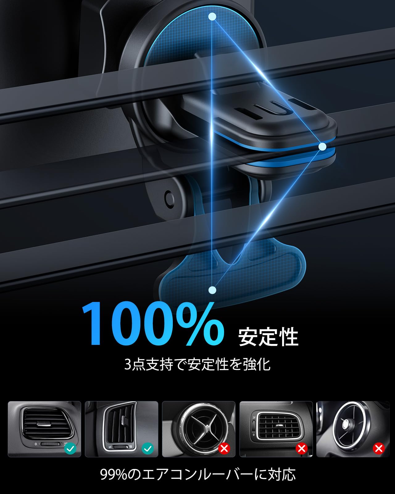 ■ 【安定したベント式固定】強力なベントクリップと固定アームにより、取り付けの安定性が向上。