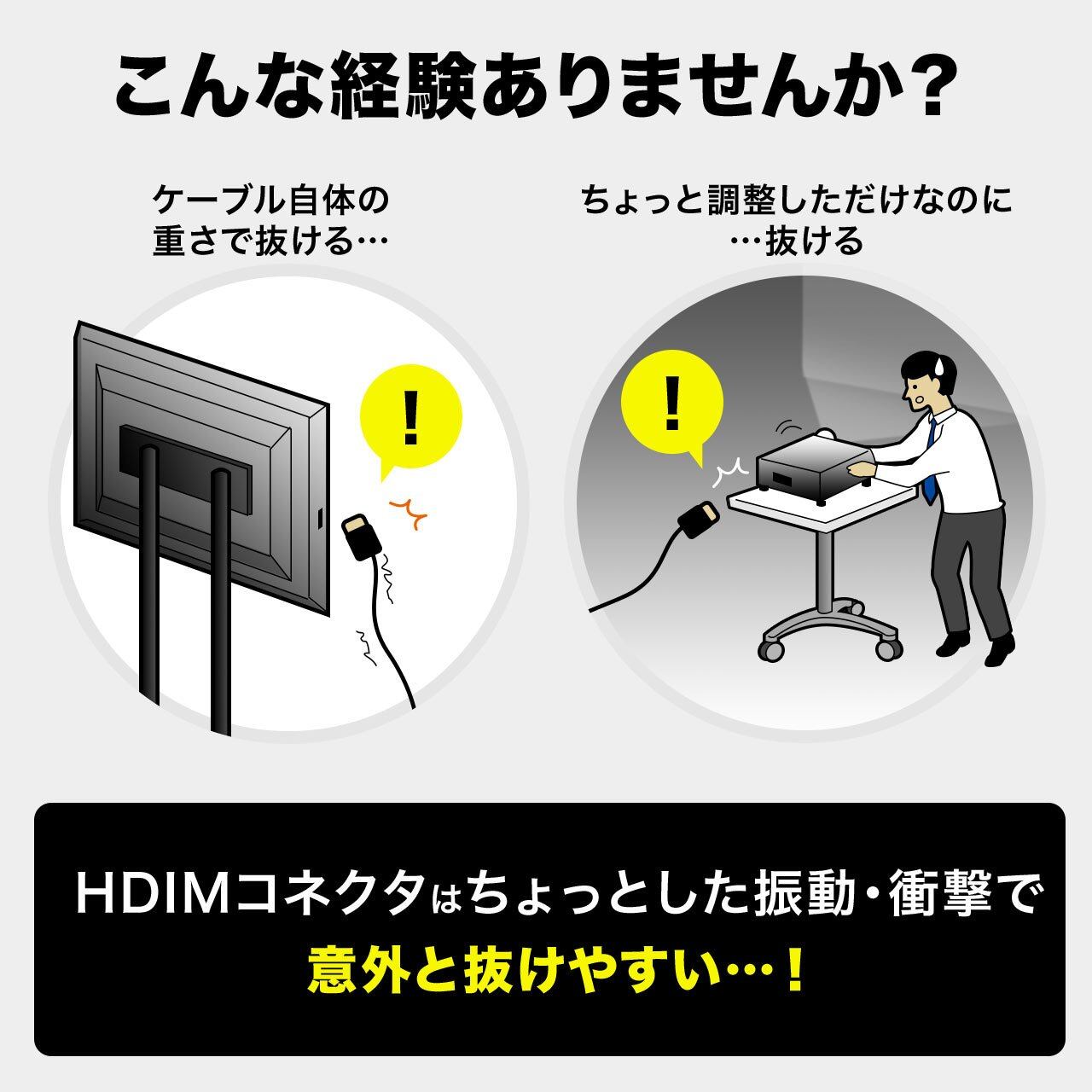 コネクタ部に 抜け止め ラッチ 内蔵で、一般的なHDMIケーブルと比較し、不意に抜けにくくなっています。