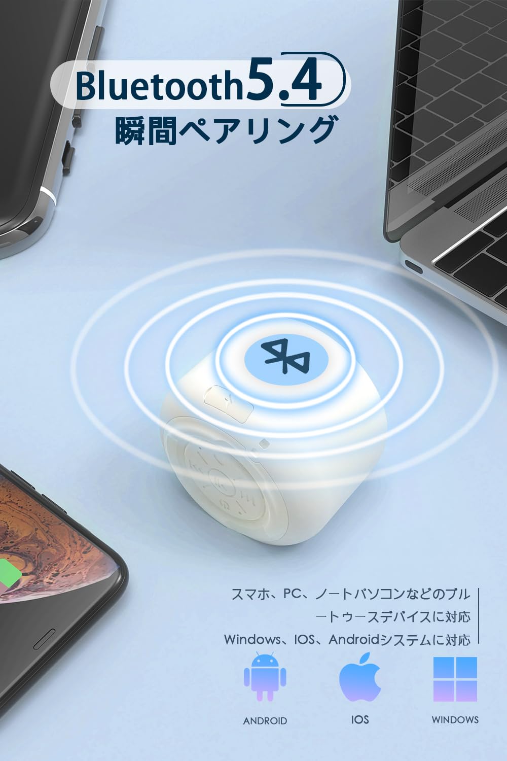 * 【Bluetooth5.4搭載・ハンズフリー通話】この手元スピーカーはBluetooth5.4で完全なワイヤレスを実現し、より高速なBluetooth接続とより安定的な接続範囲を提供します。ハイレゾ音源に対応、高品質の音声データ送信を低消費電力で実現します。「音遅れ」「音切れ」を大幅に改善されます。ゲームプレイや映画鑑賞のときに「映像と音がズレている」といったストレスから解放されます。このミニスピーカーは通話マイク内蔵しています、スマートフォンとペアリングしてハンズフリー通話ができます。プライベートな通話はもちろん、オンライン授業やテレワークにも活用できます。