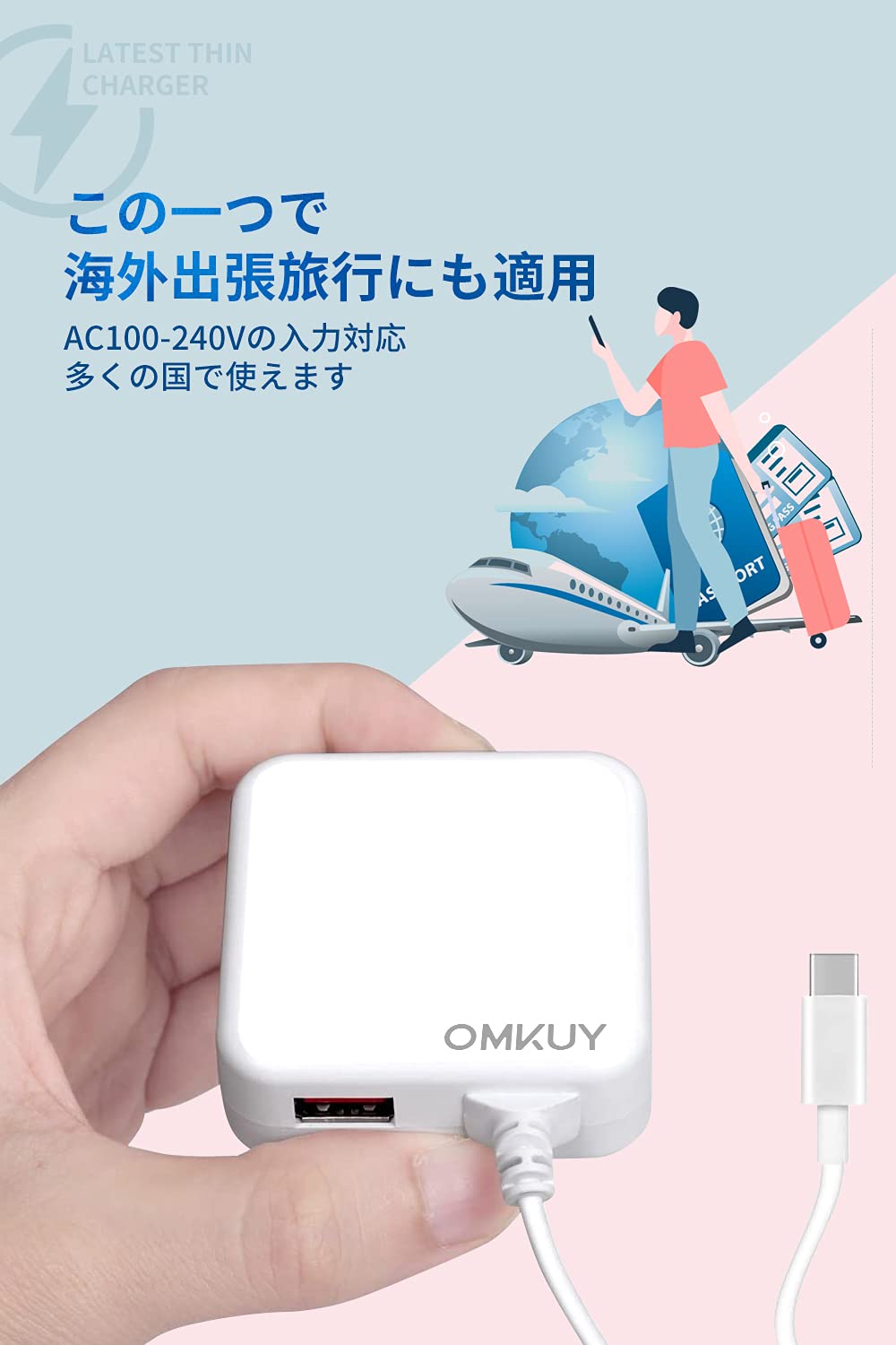 * 【薄型軽量/持ち運びに便利】サイズ (約)50×55×16mm。超薄型デザインでコンセントを干渉することがありません。180度調整可能なプラグで、コンセントの配置を選ばずに使用していただけます。ACプラグがスッキリに収納してカバンやポーチに入り、コンパクトで軽量、持ち運びにとても便利です。