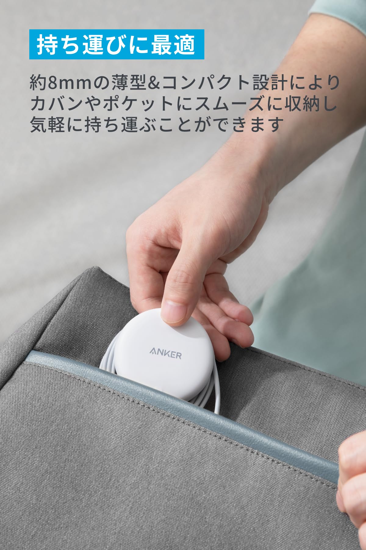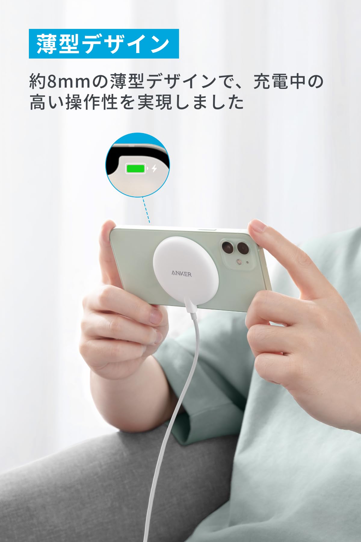 * 薄型デザイン:約8mmの薄型デザインにより、充電中の高い操作性を実現しました。