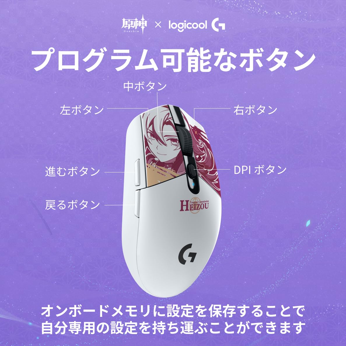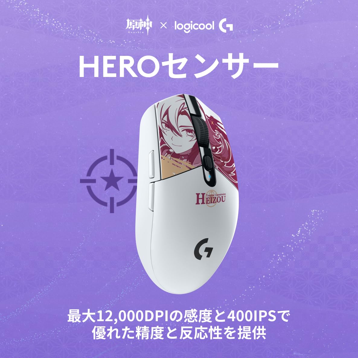 Logicool G 原神 鹿野院平蔵 特別モデル ゲーミングマウス G304 LIGHTSPEED ワイヤレス マウス G304-GE-HE 軽量 HERO 12Kセンサー 6個プログラムボタン 250時間連続使用可能 ホワイト 無線 ゲーミング PC windows mac 国内正規品