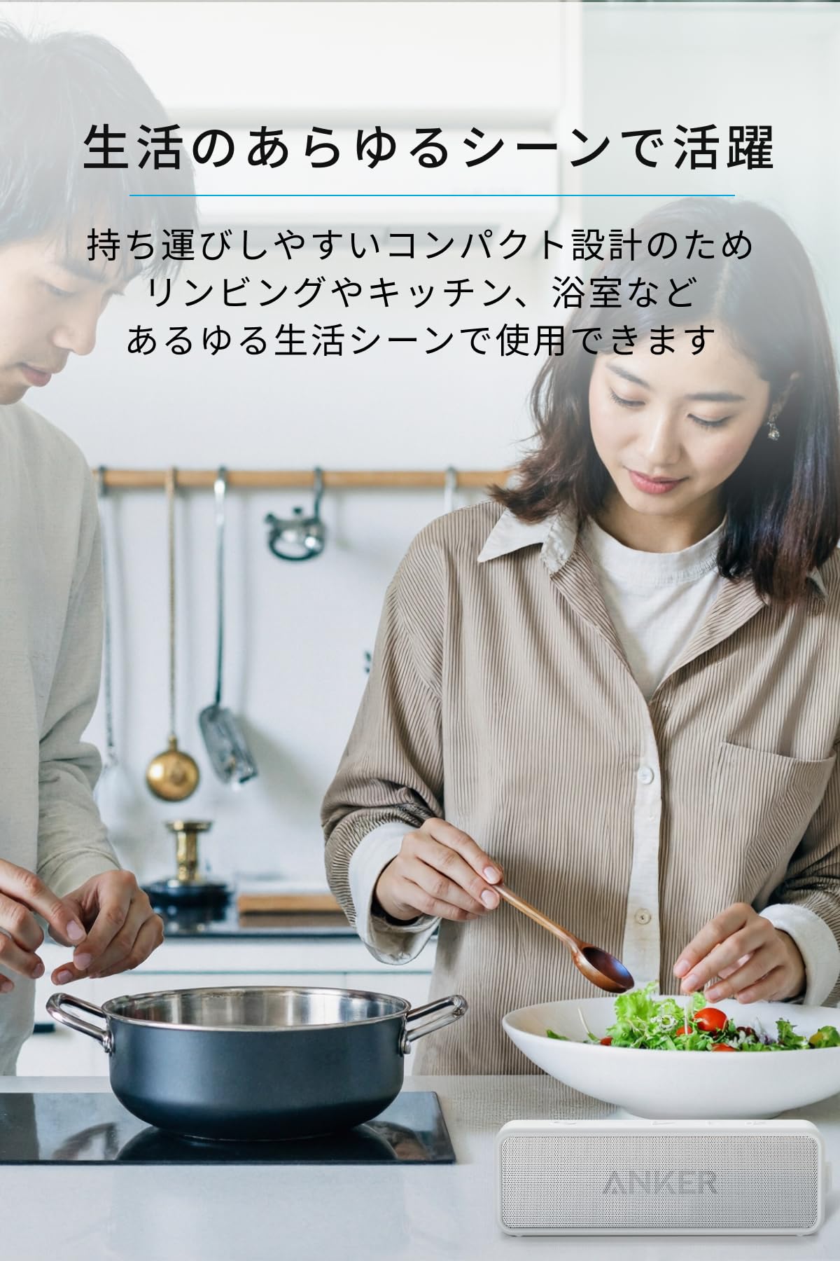 ■ さらにパワフルに:第1世代SoundCoreの2つの3Wドライバーから強化された2つの高性能6Wドライバーで、より迫力あるサウンドを実現しました。 ※本製品は、2018年度ランキング大賞(ポータブルスピーカー部門) の受賞モデル です。 ■ 強化された低音出力:Ankerの独自技術BassUpテクノロジーにより、幅広い音色と深みのある低音をお楽しみいただけます。 ■ 驚きの連続再生時間:内蔵の大容量リチウムイオンバッテリーと業界最先端の電力管理技術により、最大24時間(約500曲)の連続再生が可能。 また、スピーカー自体のバッテリー残量はBluetoothペアリング中のiPhoneやiPadからも確認が可能です(※iOS 6以降の機器のみ対応)。 ■ IPX7の防水規格:IPX7の防水規格対応なので、浴室内やキッチンなどの水回りでも水濡れを心配することなく音楽を楽しむことができます。 ■ パッケージ内容:Anker SoundCore 2、USB-C & USB-A ケーブル、取扱説明書、カスタマーサポート 技適マーク認証済み商品(周波数帯:2402MHz~2480MHz)