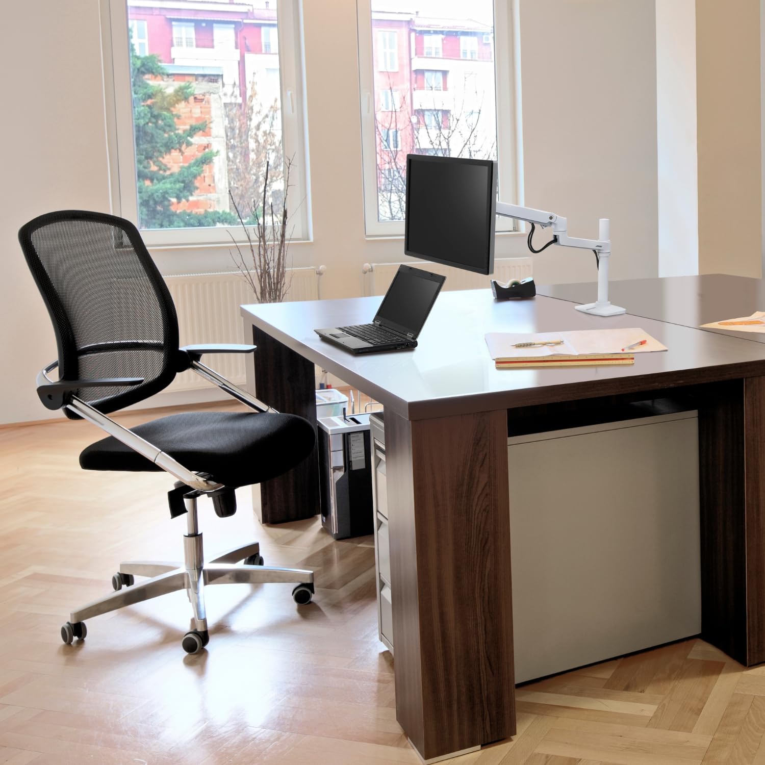 ■ エルゴトロン独自のコンスタント・フォース技術により、ガススプリング式のような経年劣化がない多用途向けモニターアームです。