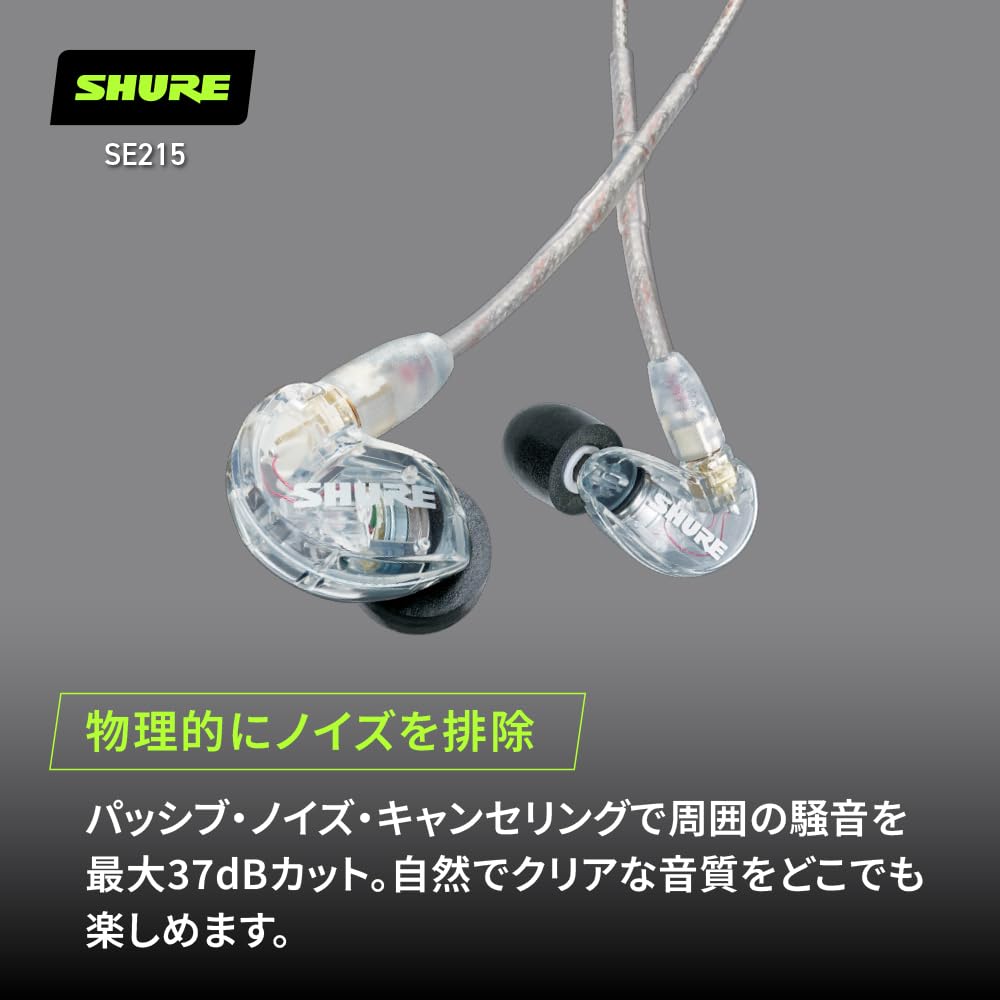 【VGP 殿堂入り金賞】SHURE シュア イヤホン 有線 SE215-CL-A クリア : 高遮音性 ゲーム ゲーミング カナル型 ワイヤレス変換可(別売) MMCX リケーブル プロ仕様 イヤモニ モニター 配信 音楽 オーディオリスニング レコーディング 録音 楽器 在宅勤務 リモートワーク テレビ ラジオ ケーブル長162 cm 【国内正規品】
