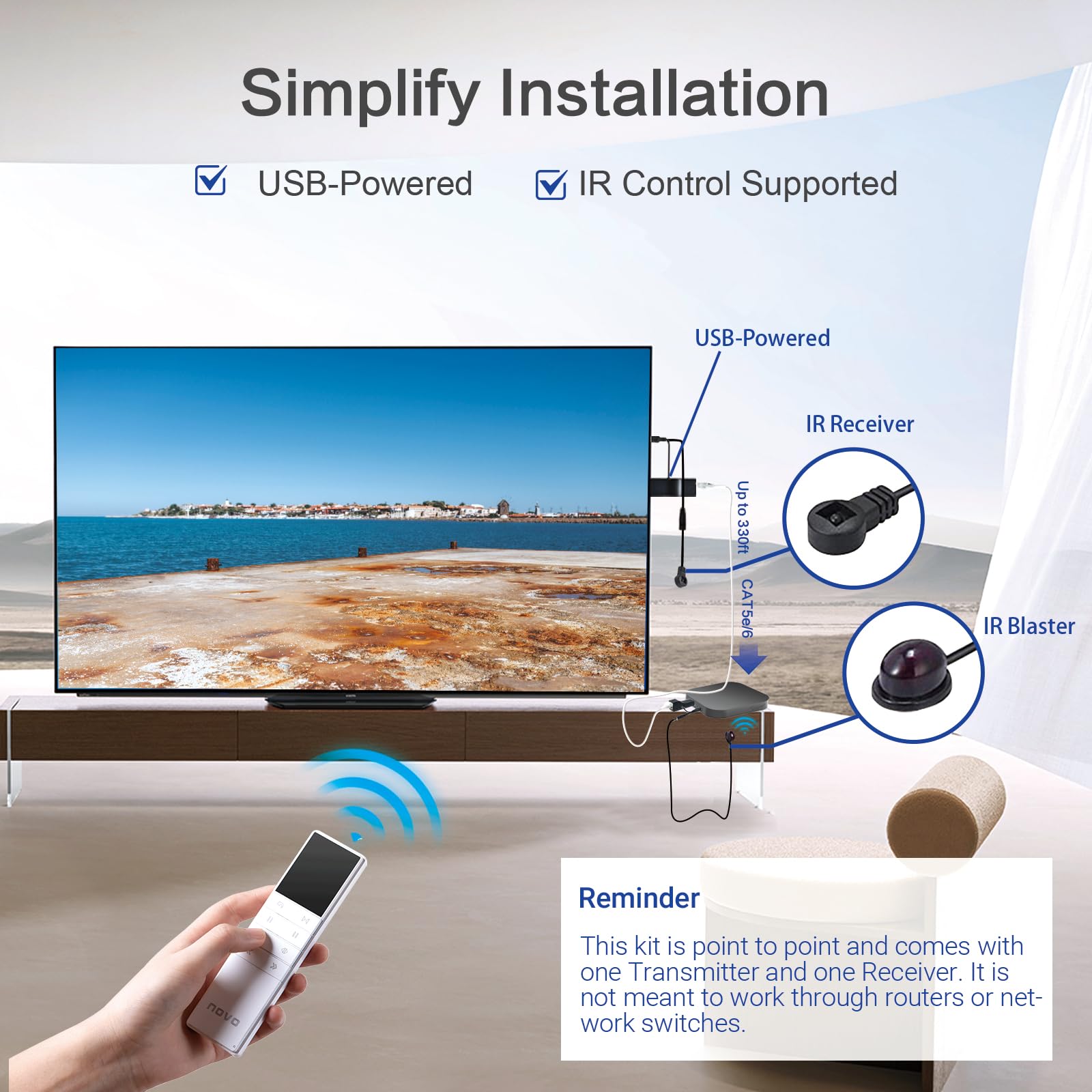■ 【1080P 330フィート無損失延長】このコンパクトなHDMIエクステンダーで、HDMIソースから最大330フィート(100m)までのディスプレイにHDMIビデオやオーディオを簡単に拡張できます。 ビデオ解像度1080pでも。 既存のCAT5またはCAT6インフラストラクチャを使用したシームレスな統合を可能にし、複数のイーサネットケーブルを稼働させる手間を省き、潜在的な故障ポイントを削減します。 ■ 【優れたビデオ品質】自動調整で異なるケーブルの長さに対応し、最適なビデオとオーディオ体験を提供します。 ソースデバイスから330フィート離れた場所でも、クリアな画質を維持します。 信号劣化なし、フレームが落ちません。 ■ 【赤外線リモコン】20~60KHzの広周波数赤外線リモコンに対応しており、DVDプレーヤーまたはその他のHDMIビデオソースデバイスをリモートロケーションから制御することができ、CAT5e/6ケーブルに順番にコマンドを伝える付属のIRケーブルで便利です。 注意:パッケージにはマイマイクロUSB to IRケーブル2本、IRブラスター1本、IRレシーバー1本が含まれます。 ■ 【取り付け簡単】このミニHDMI延長キットは、シンプルで整理された取り付けのために、小さなフットプリントとHDMI Aタイプオスコネクターが組み込まれており、ビデオソースやディスプレイに直接接続でき、余分なHDMIケーブルを必要とすることなく散らかりを減らします。 電源はUSBで動作するので、電源デバイス上のUSBポートを使用して送信機と受信機に電力を供給できます。 電源コンセントが限られている場所からの延長に最適です。 ■ 【対応機種&メーカー保証】EDIDマネージャーをサポートしているHDMIエクステンダーはBlu-rayプレーヤー、HDボックス、TV、DVDプレーヤー、HDD-DVDプレーヤー、HDMI LCD、PC、テレビ、ビデオの防犯カメラ、プロジェクターなどHDMIポートが搭載されたデバイスに対応可能です。ご購入日より、2年間のメーカー保証とご購入日から30日間以内に返品&返金保証の顧客満足の保証付きます。 また、24時間以内に応対するアフターサービスを提供いたします。