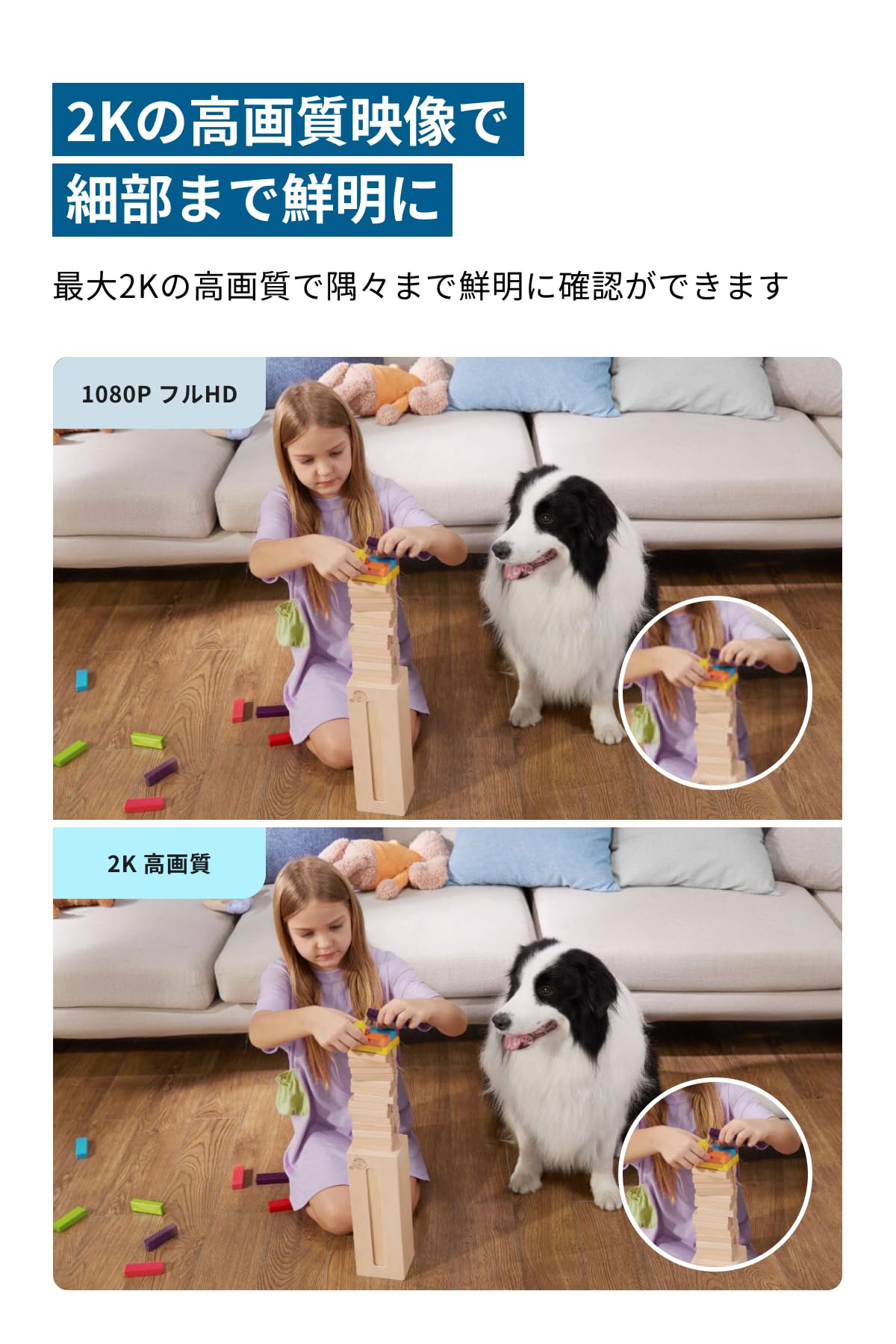 Anker Eufy IndoorCam 2K Pan & Tilt(見守りカメラ)【屋内カメラ/ネットワークカメラ/ベビーモニター/ペット見守り/音声アシスタント/ナイトビジョン/モーショントラッキング/全周囲監視】