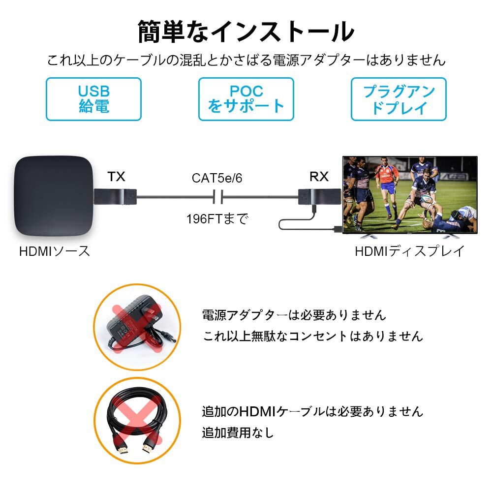 HDMIエクステンダー HDMI延長器 60Mまで延長 CAT5e/CAT6ケーブル POC 信号損失なし レイテンシーなし フルHD 3D EDIDコピー USB給電 簡単なインストール HDMI送受信機(HE15)
