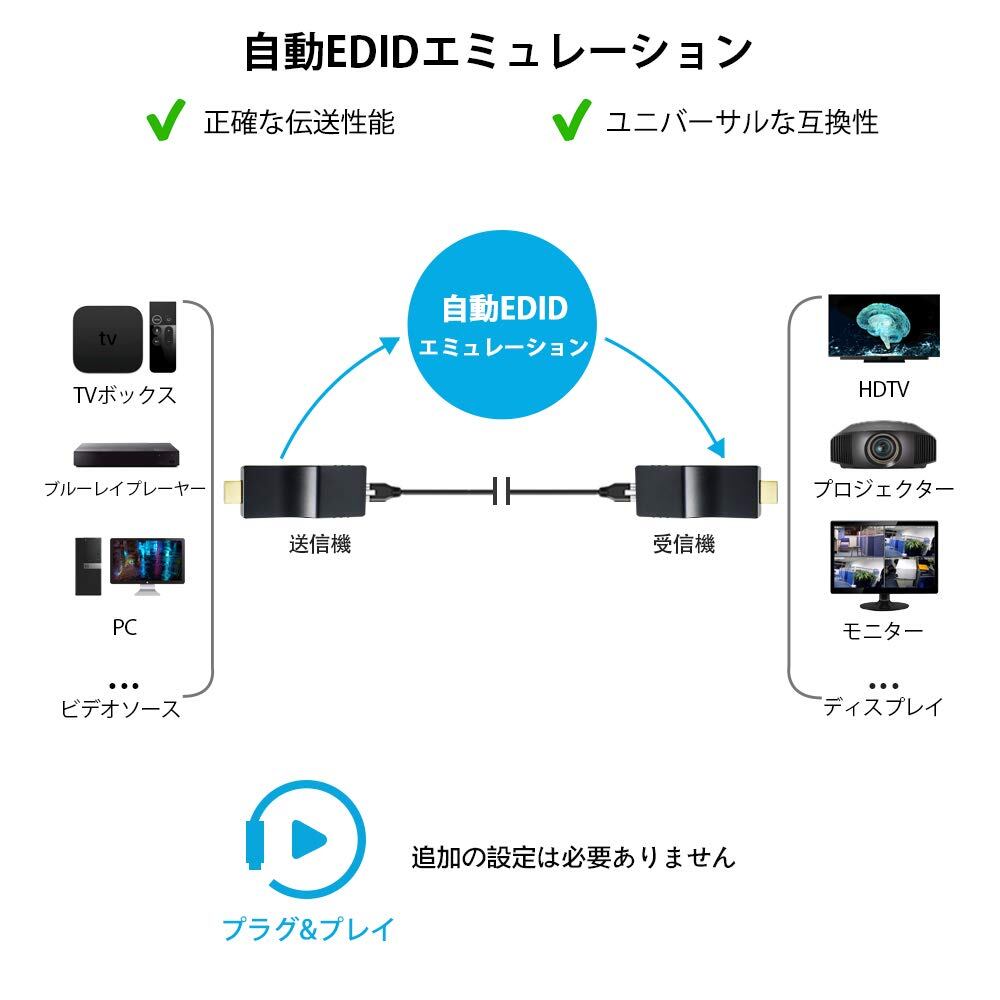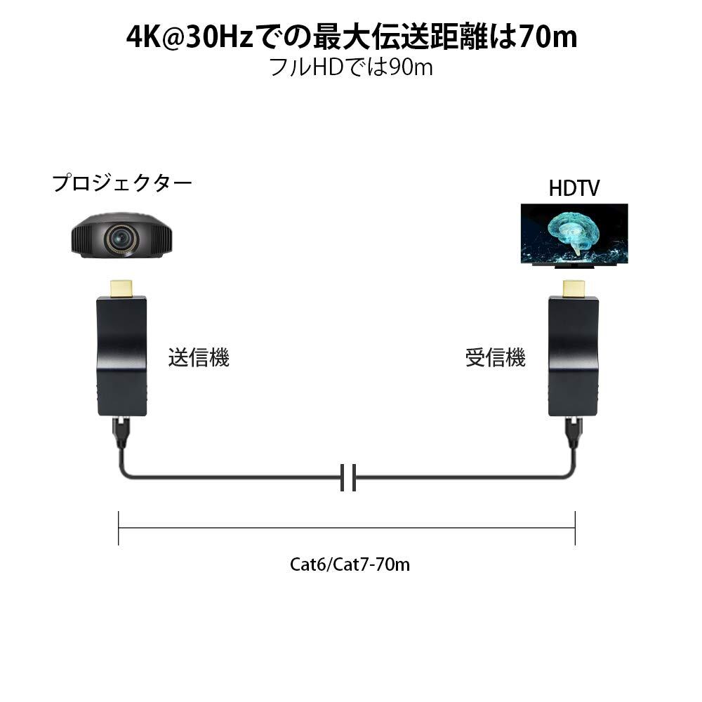 4K HDMIエクステンダー 4K@60Hzで最大70m シングルCAT5e/6ケーブル上 レイテンシーなし 紛失なし HDCP 2.2 自動EDID レイテンシなし POC HDMI送受信機(HE30)