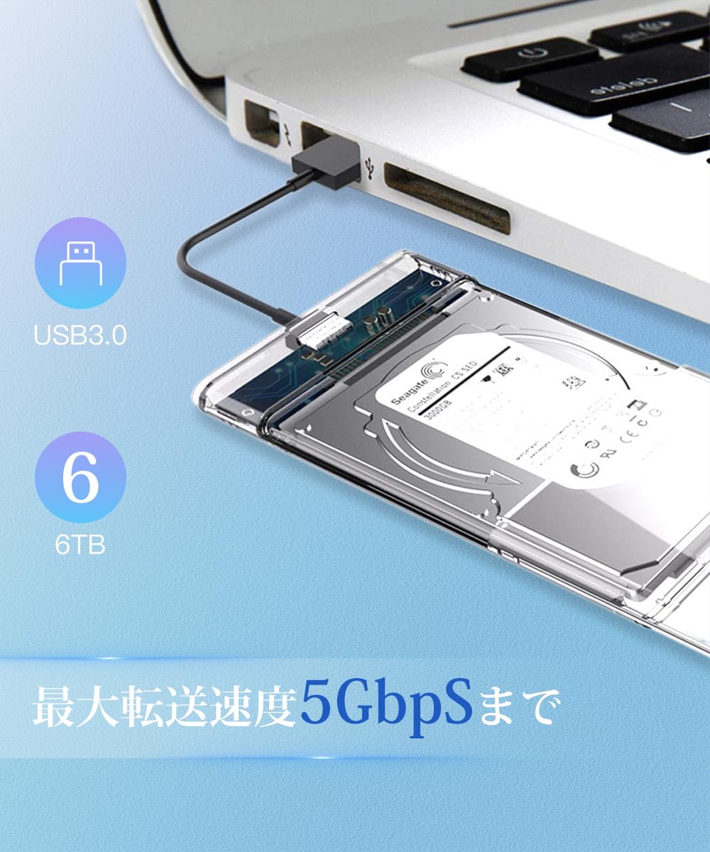 YFFSFDC USB3.0 2.5インチ HDD/SSDケース USB3.0接続 SATA III 外付けハードディスク 5Gbps 高速データ転送 UASP対応 透明シリーズ ポータブル SSD ドライブ ケース SATA USB 変換ボックス ネジ&工具不要 簡単着脱 Mac Windows Linux PS4 PS3 XBox HDTV等対応
