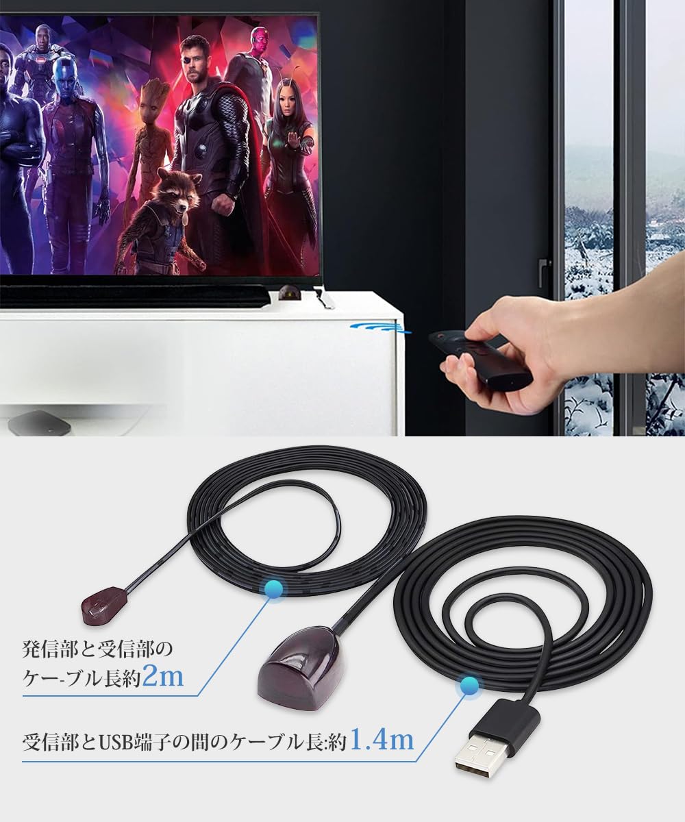YFFSFDC 赤外線リモコンリピーター リモコン中継器 USBケーブル付き リモコンリピーター 1つの赤外発光ヘッド AVボード内にリモコン信号を届かせる 高感度