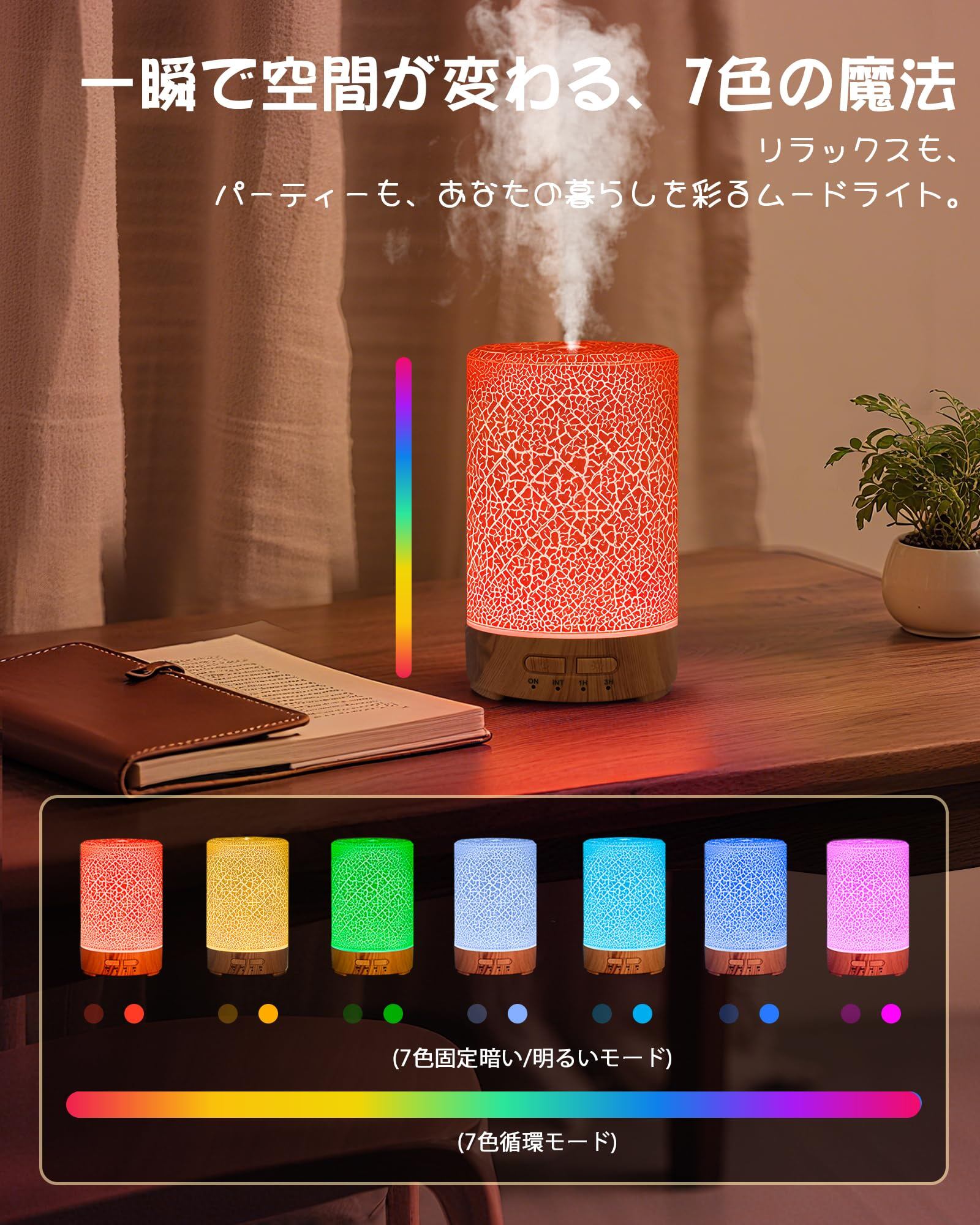 * 【タイマー機能付き小型加湿器&空焚き防止機能】ミストボタンを押すとお好みでミストの運転モード(連続・間欠)をご選択いただけます。2段階のタイマー機能で使いたい時間に合わせて1時間/3時間のミストが出続けます。また、水切れになると自動で停止し、就寝時など長時間の運転でも安心して使えます。お好きなエッセンシャルオイルを入ればフレグランスも楽しめます。気分に合わせて好きなライトやエッセンシャルオイルを使い、最も快適な雰囲気を作り出す。